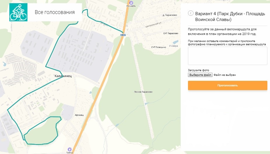 Поддержите голосованием соседей и получите безопасный маршрут для длительных велопрогулок. Его название: «Вариант 4 (Парк Дубки - Площадь Воинской Славы)».