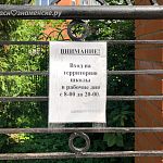 Охранники выгоняют детей и родителей в указанное на табличке время, ссылаясь на приказ директора школы.