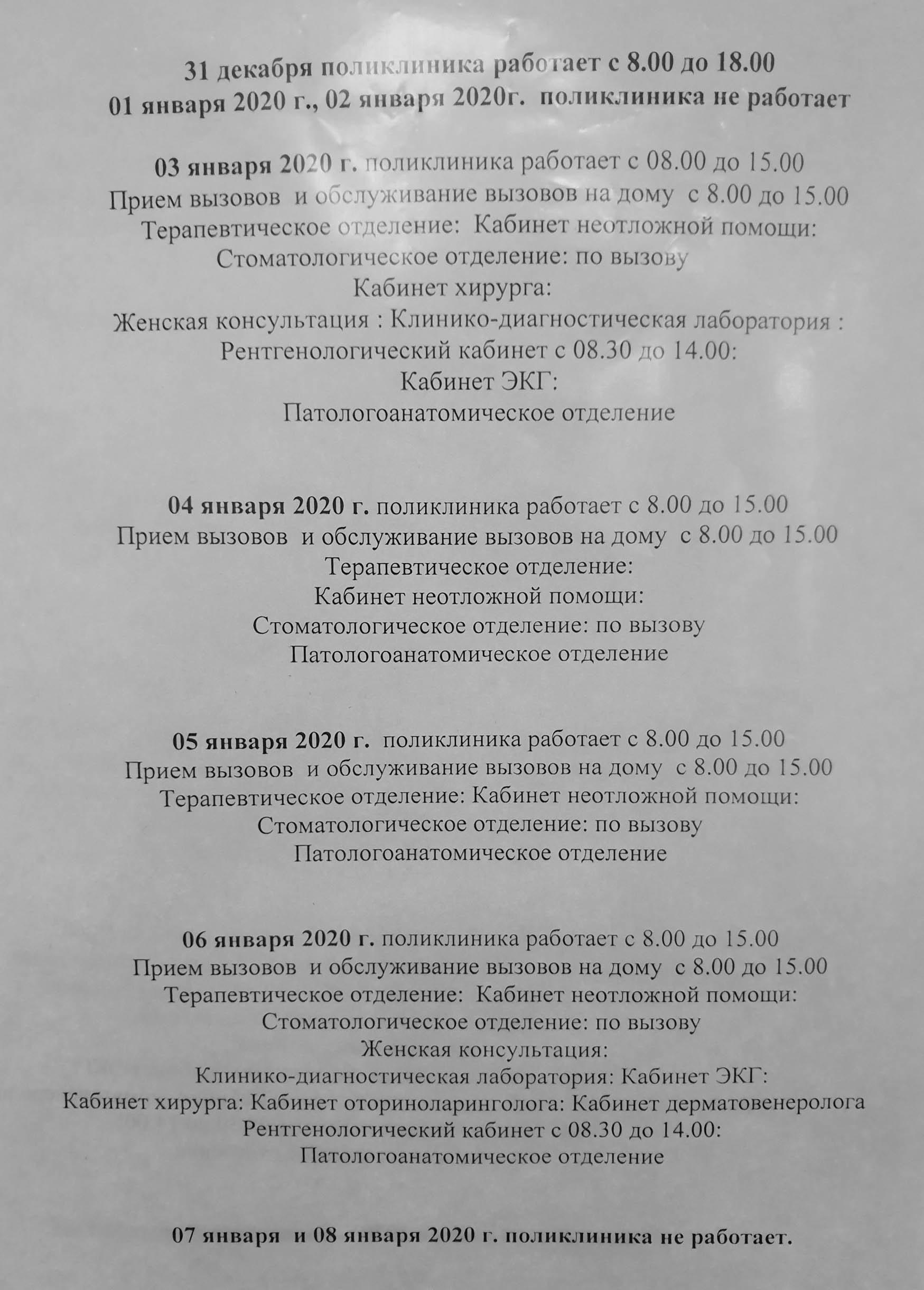 31.12.2019г. - поликлиника работает до 17.00.