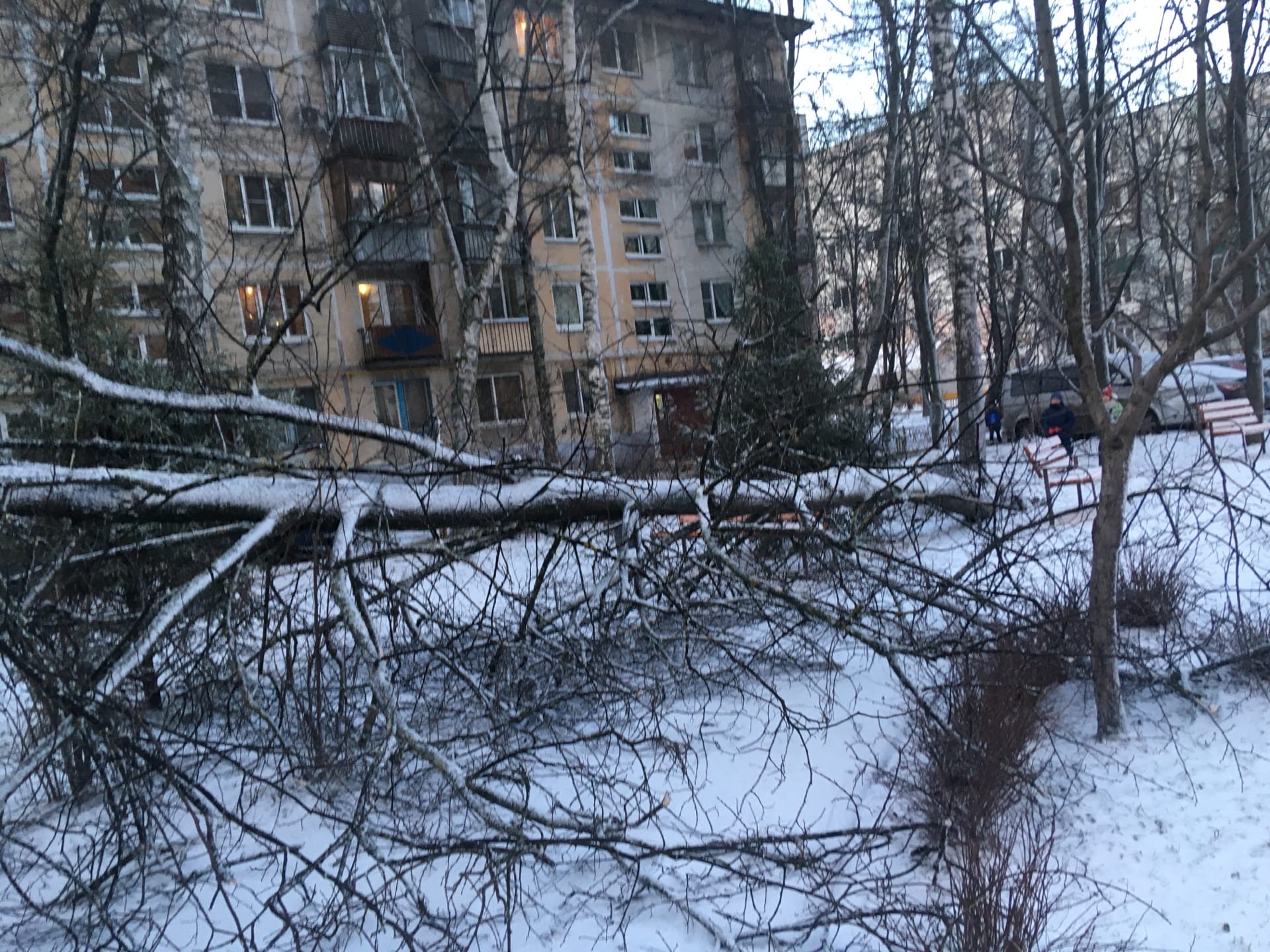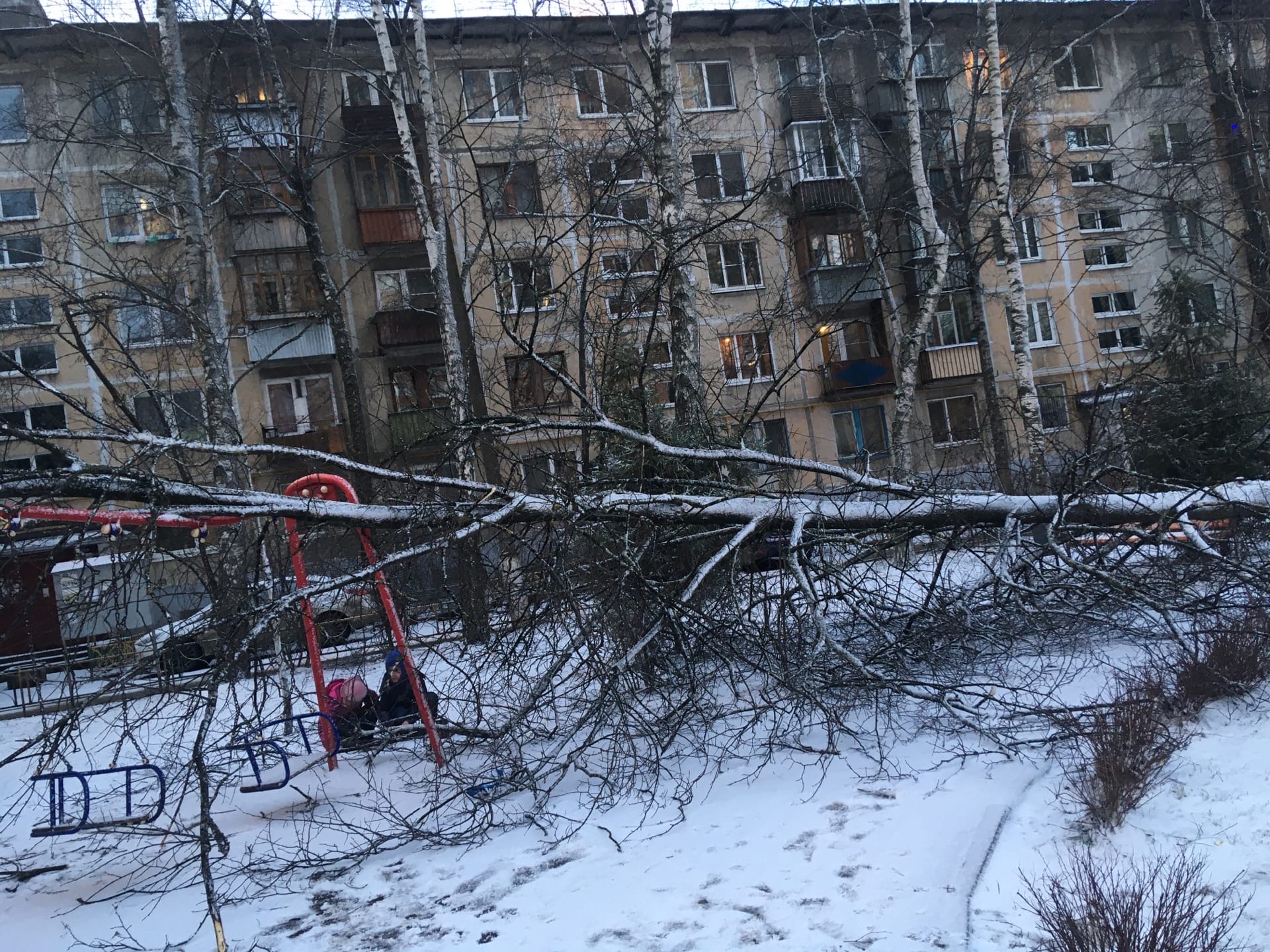 Хорошо, что это случилось ночью, а не днём... Дерево упало ровно на спортивную площадку.