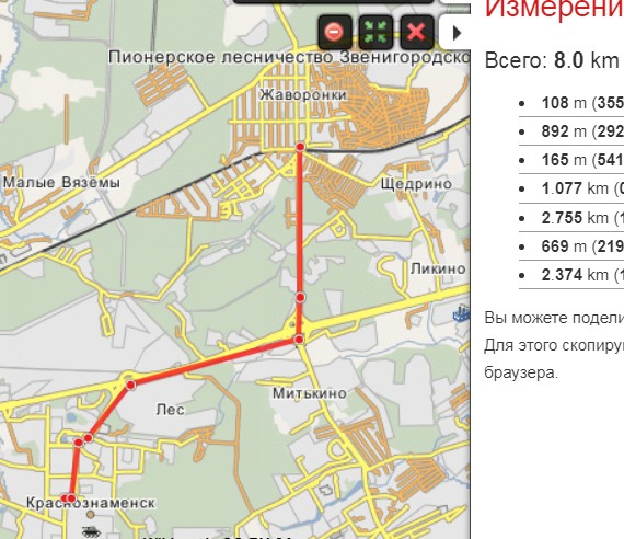 До станции Жаворонки, без МЦД и с пробками на М1, 8,0 км: