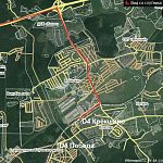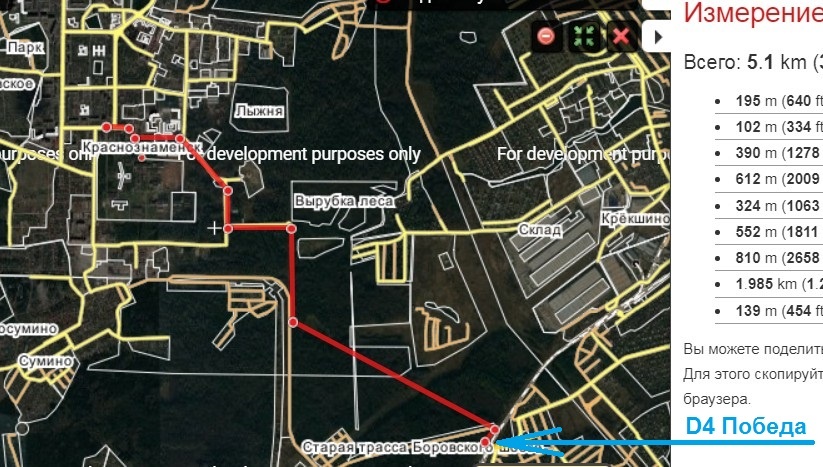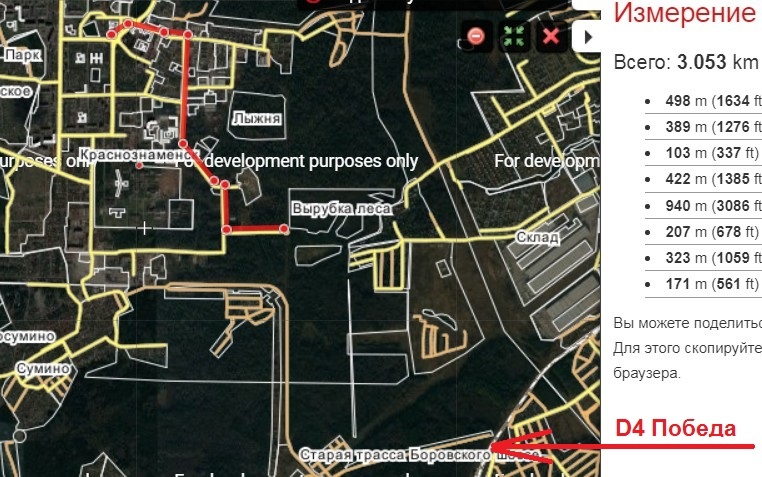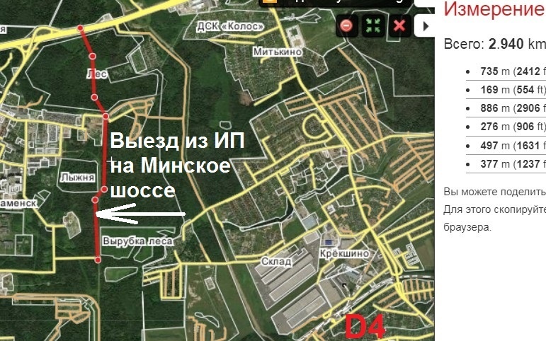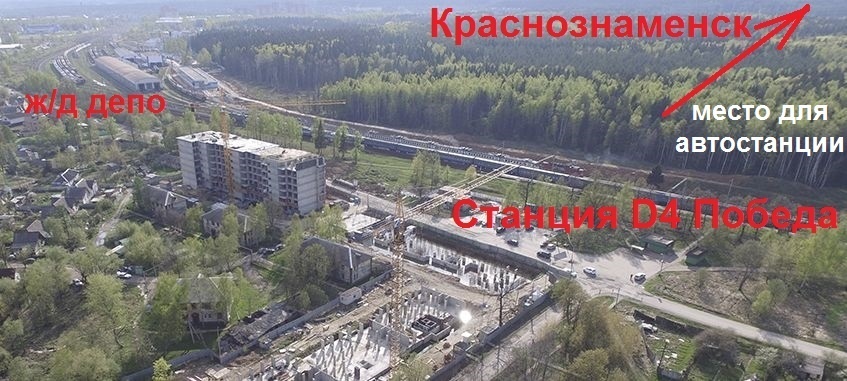 Кратчайшая автодорога из Индустриального парка (ИП) к станции D4 Победа не затронет ни газопровод, ни один участок земли в частном владении. 2/3 пути по суверенной земле г.о. Краснознаменск, 1/3 – по лесу Наро-Фоминского района Московской области, всего 3 км. Будет частично использована существующая насыпь в сторону Апрелевки: