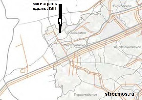 Планируемая магистраль вдоль ЛЭП в Крёкшине на Генплане Москвы. Подробности: vk.cc/aotPwX