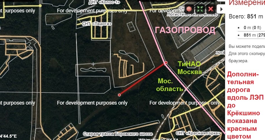 3) Ещё более мы боимся строить дорогу в Крёкшино вдоль кольцевого московского газопровода;