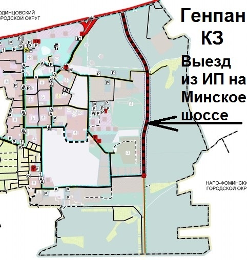 Такие же 3 км нового асфальта, как у ранее рассмотренной дороги из ИП к пробкам на Минское шоссе (М1), заложенной в Генплан КЗ: