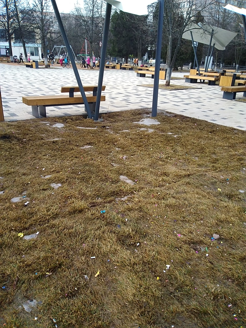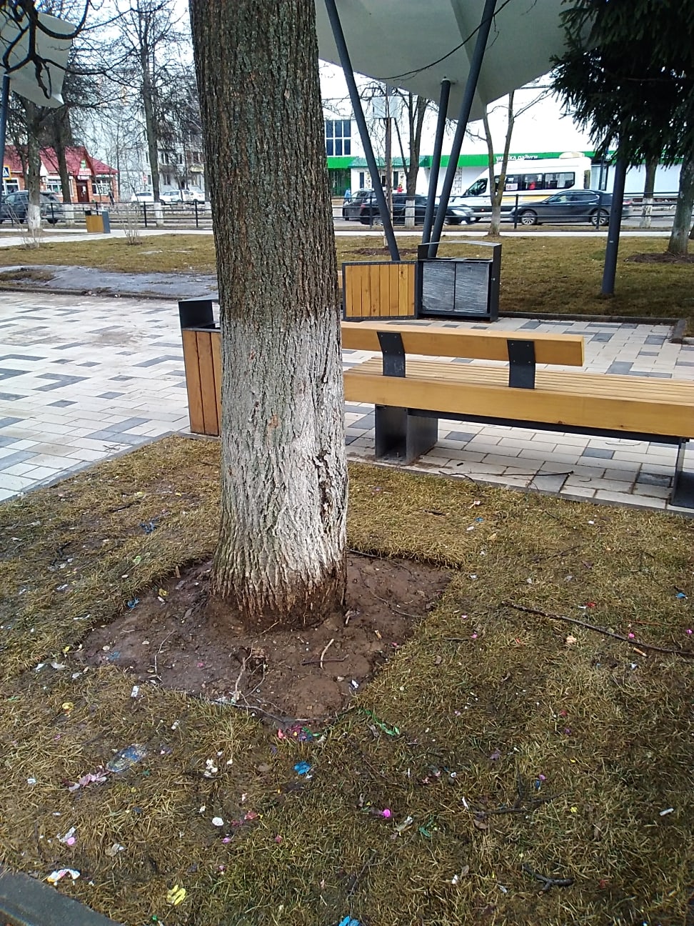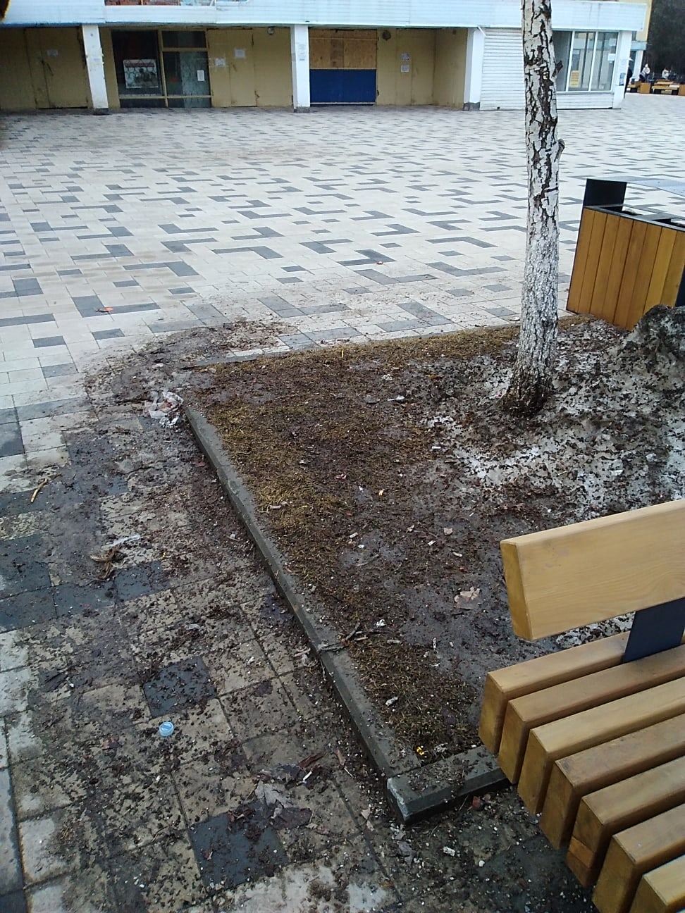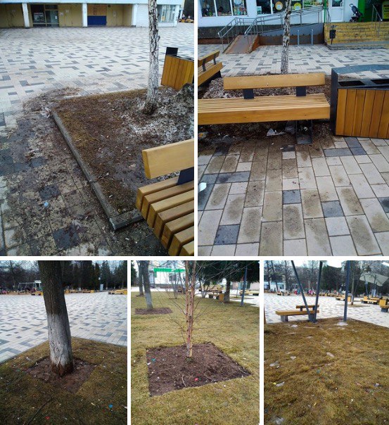 Буквально вчера была опубликована запись о мусоре на голубиной площади и рядом, располагающихся кафе. На площади, трактор разметал мусор по сторонам и он так и остался там лежать. Под новостью в переписке с местными жителями Администрация оставила комментарий, что при благоприятных погодных условиях все дефекты будут восстановлены силами МКП «Коммунального хозяйства и благоустройства».