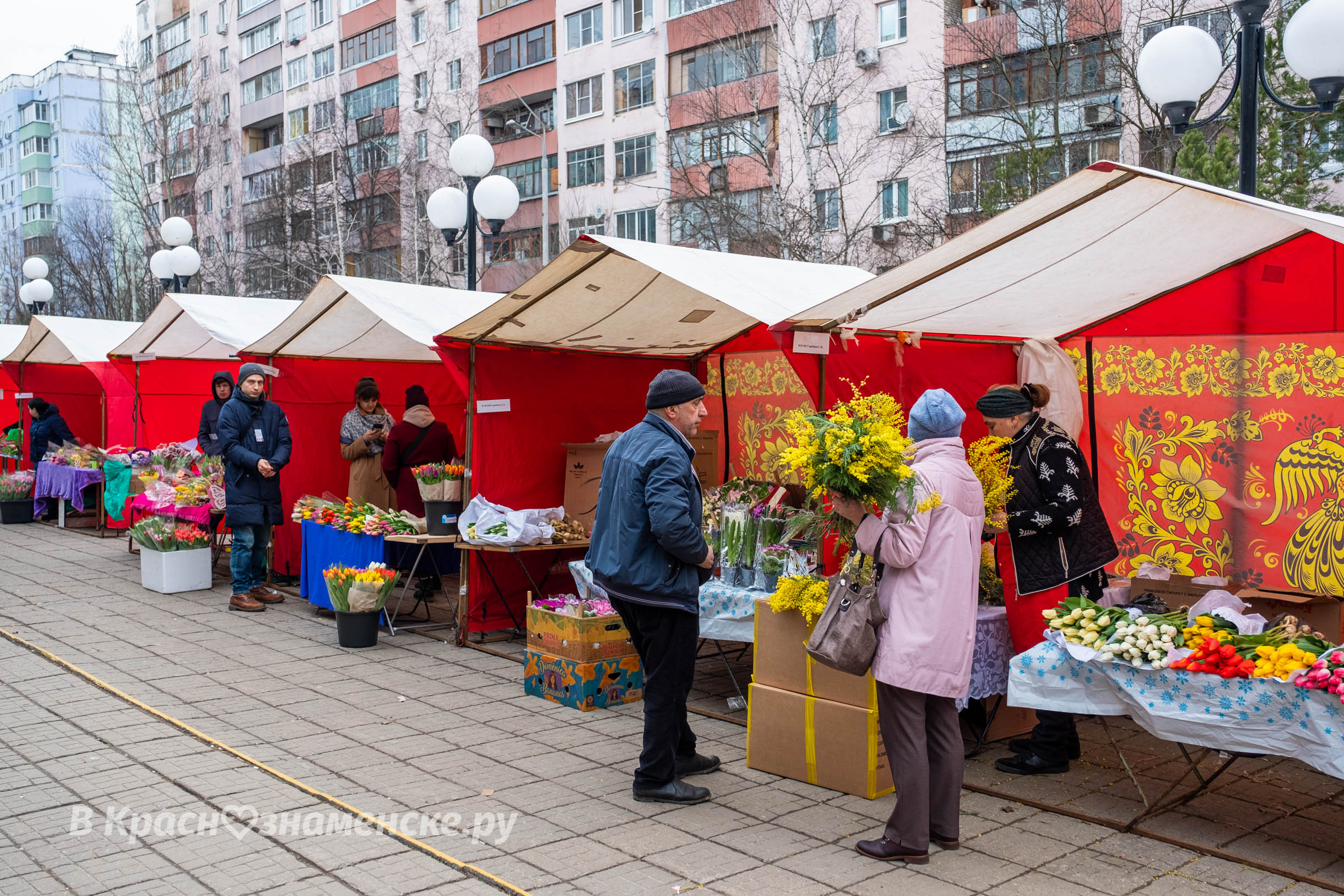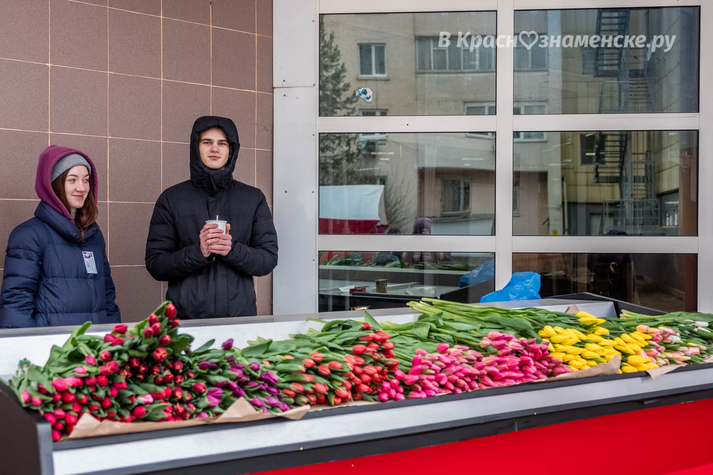 С самого утра у городских рынков открыли свою работу цветочные ярмарки, разноцветные букеты самых весенних цветов создают приятную атмосферу приближающегося женского праздника.