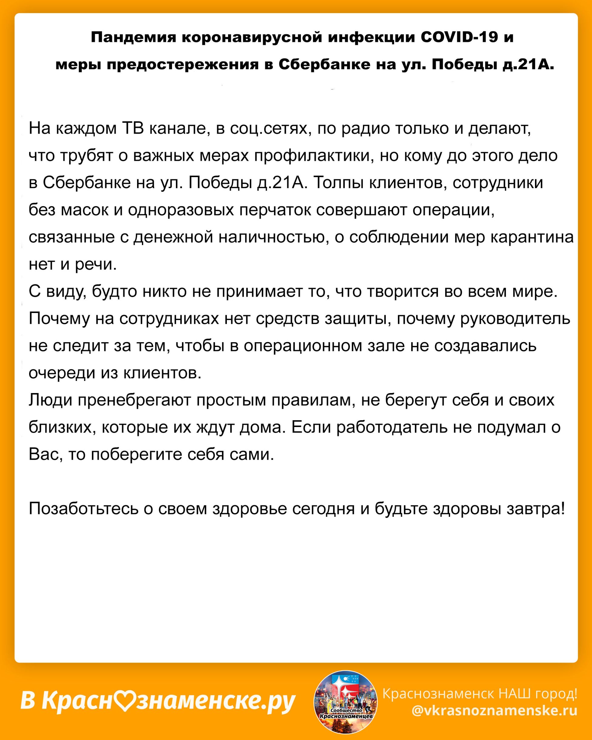 Пандемия коронавируса и меры предостережения в Сбербанке на ул. Победы д. 21 А