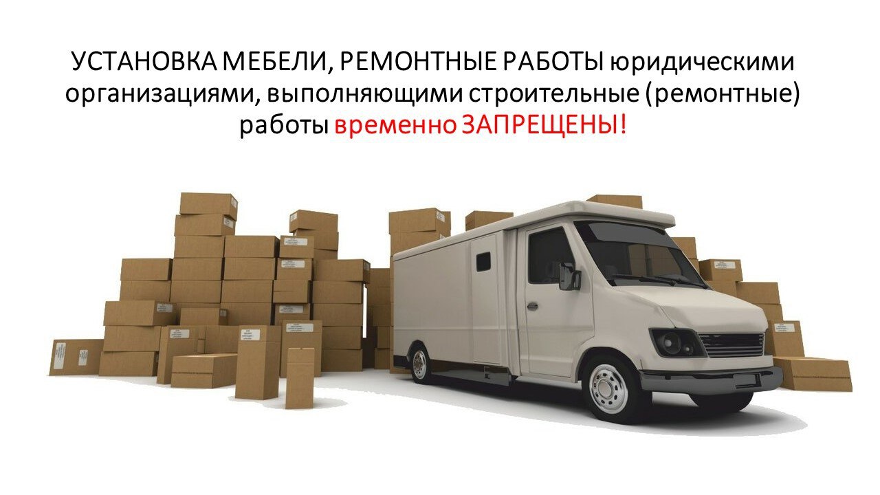 Учитывая продолжающуюся сложную ситуацию с COVID-19 убедительная просьба минимизировать Ваши контакты! Напомню, что Постановлением Губернатора Московской области от 12 марта 2020 № 108-ПГ с изменениями и дополнениями, курьерская доставка допустима согласно перечню жизненно необходимых товаров и услуг в условиях самоизоляции. УСТАНОВКА МЕБЕЛИ, РЕМОНТНЫЕ РАБОТЫ юридическими организациями, выполняющими строительные (ремонтные) работы временно ЗАПРЕЩЕНЫ!