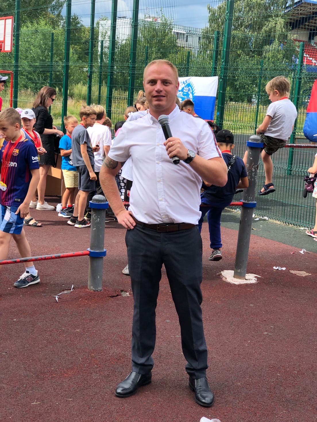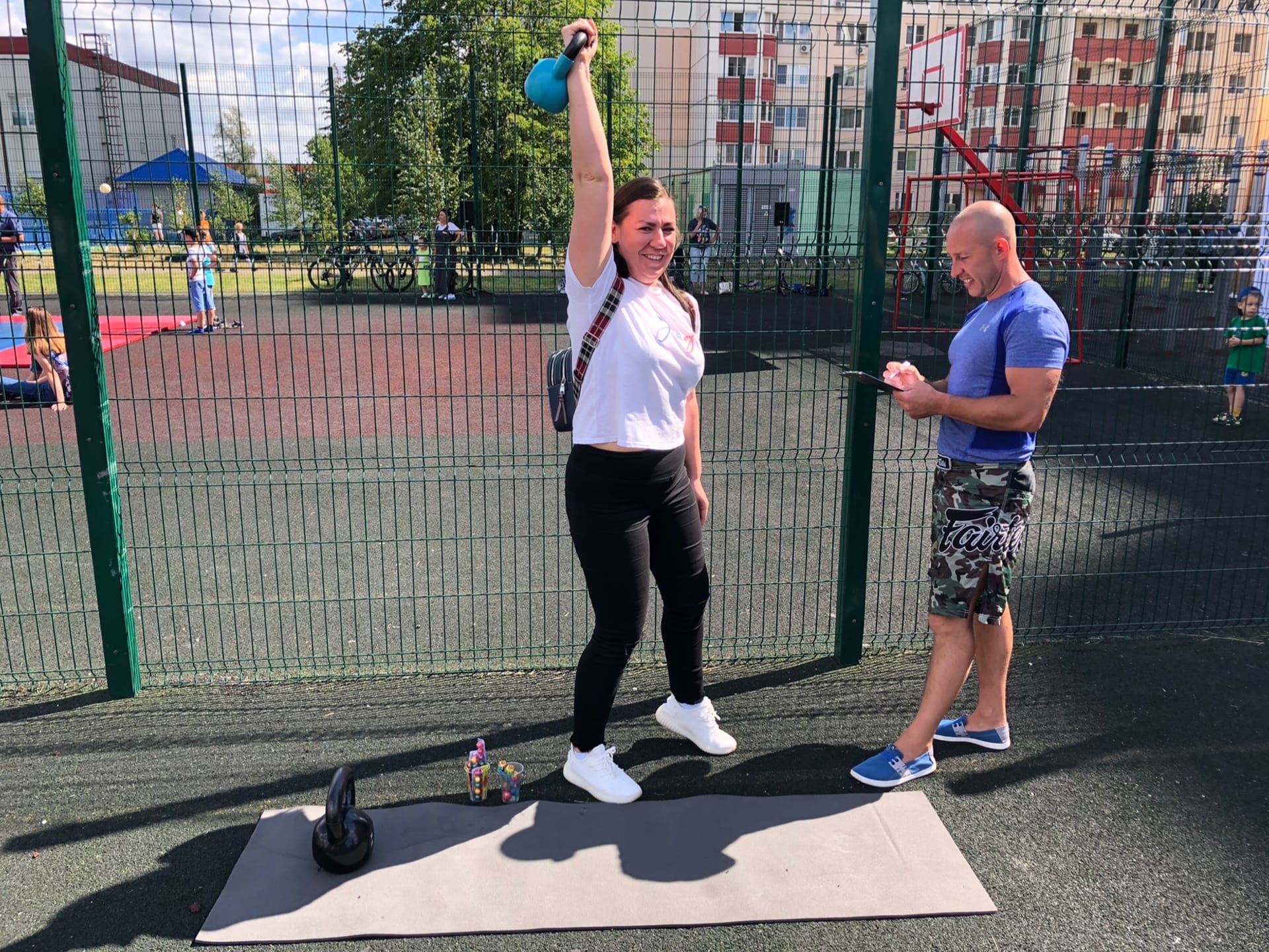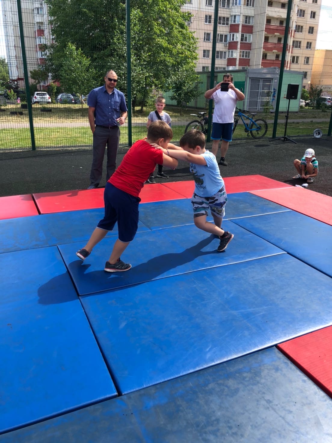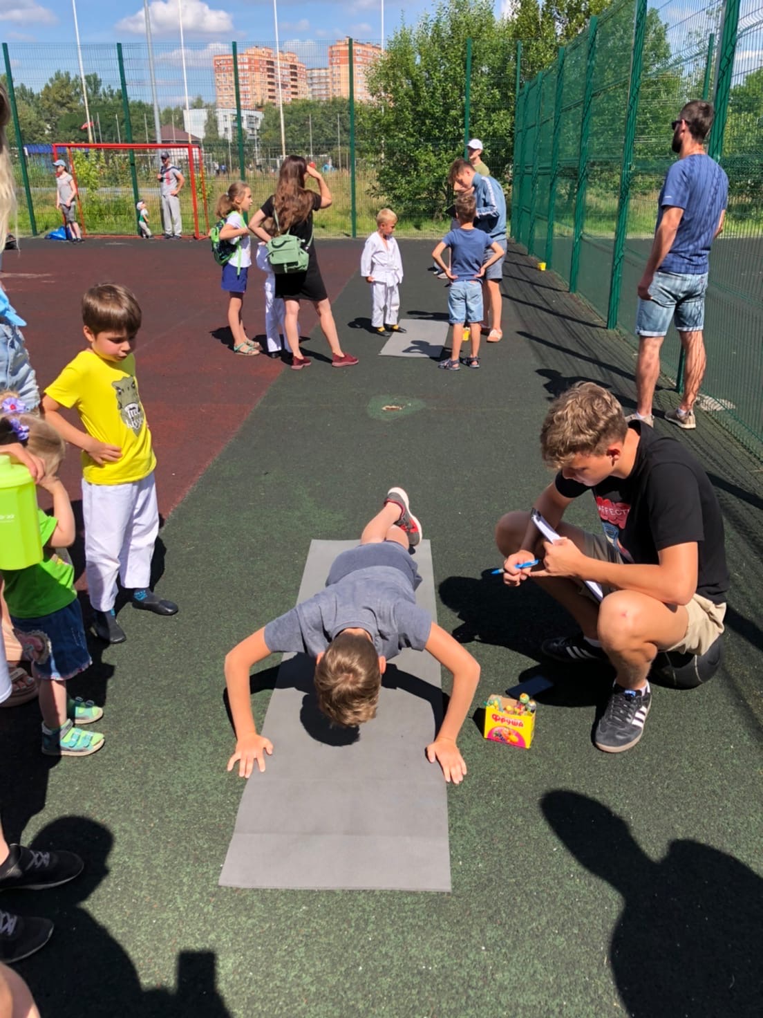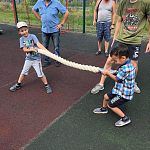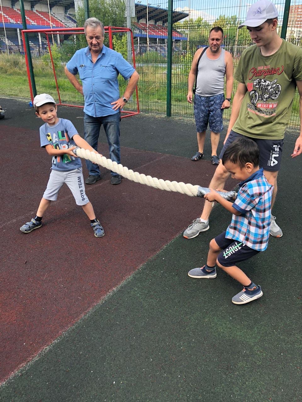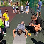 Сначала всех гостей приветствовали спортсмены рукопашного боя из ДЮСШ и центра БОГАТЫРЬ, выступив с показательными выступлениями. Было очень приятно видеть радостные лица детей, которые с большим азартом соревновались в подтягивании, отжиманиях, толкании гири, упражнении бёрпи, боролись как борцы сумо, соревновались на мечах, в минигольф и перетягивании каната 1х1, гребле, полосе препятствий! Примером для многих были родители, которые также учавствовать во всех мероприятия! Развязкой стала анимационная программа для малышей, подготовленная киндер праздником. На два часа город стал одной спортивной семьей. Более 200 детей и взрослых получили памятные медали!! Чемпионы по видам соревнований получили фирменные кепки. А абсолютно все участники, на протяжении всего праздника получали сладкие призы и лимонад. Спасибо всем кто пришёл!! Это было очень здорово! Уже с нетерпением ждём следующего мероприятия!
