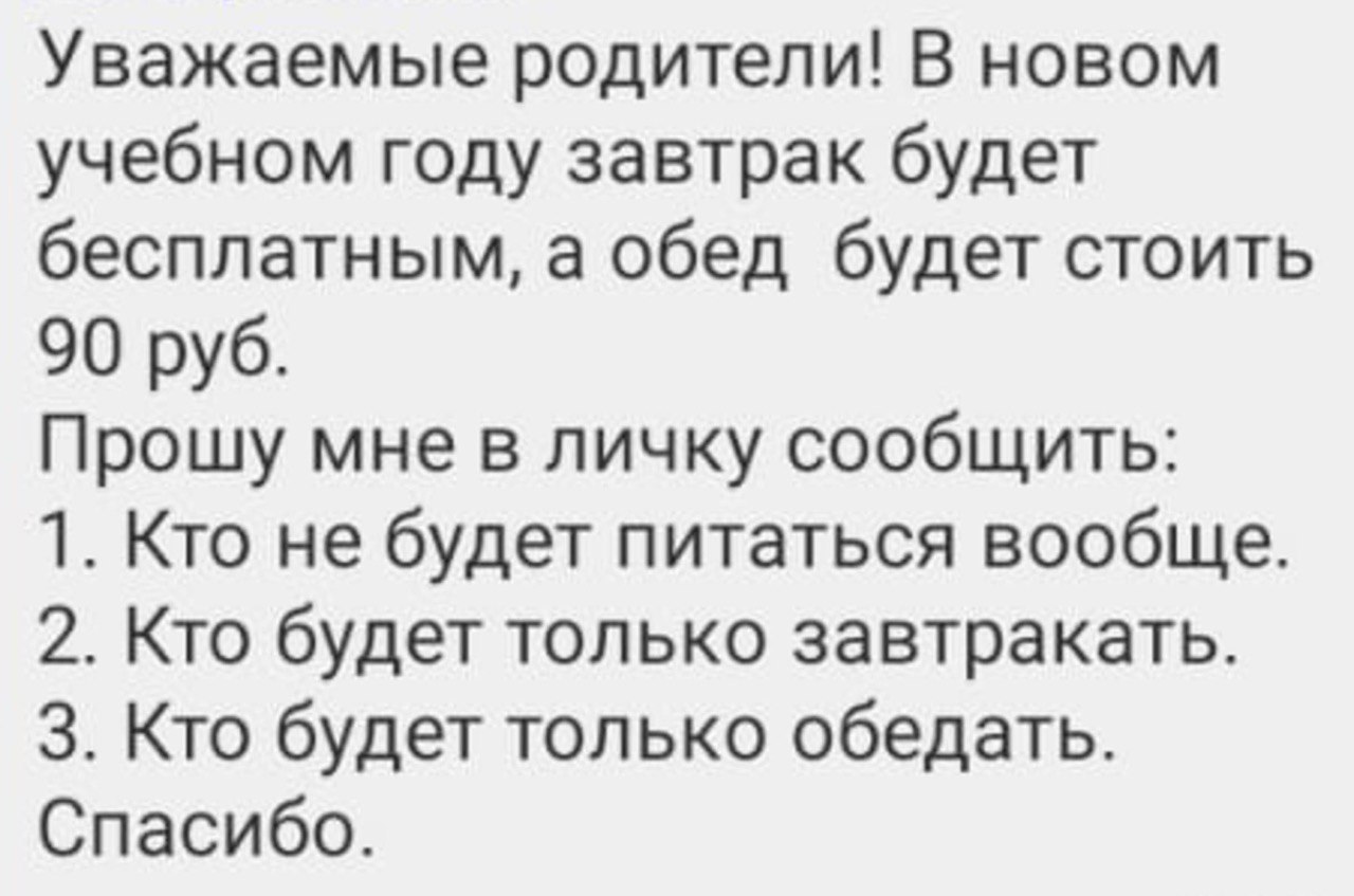 В наших школах, похоже, бесплатными будут только завтраки, потому что они дешевле в затратах, а обеды - за счет родителей.