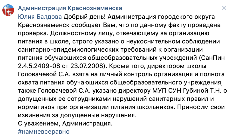 Ответ Администрации Краснознаменска: