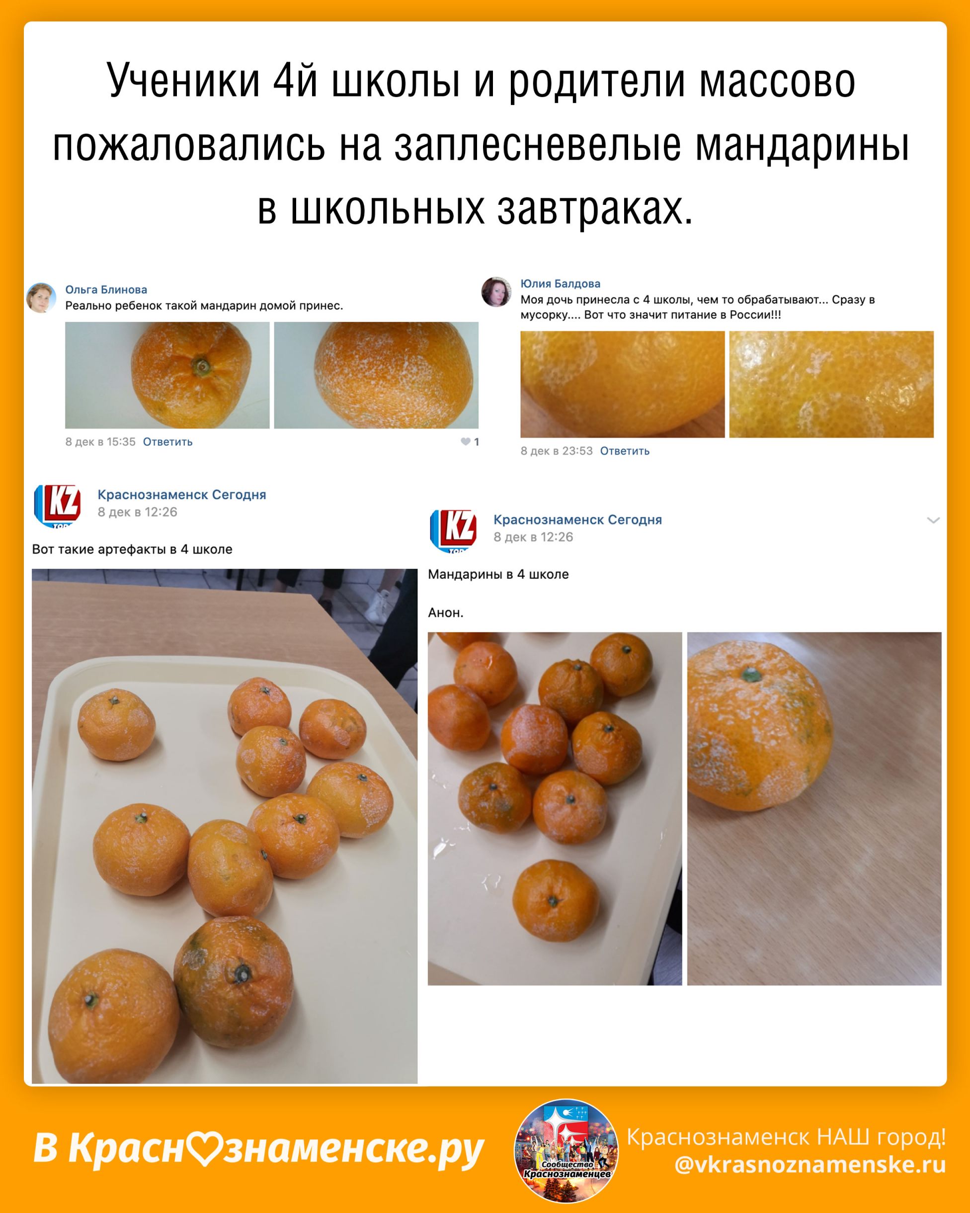 В 4й школе детей накормили заплесневелыми мандаринами