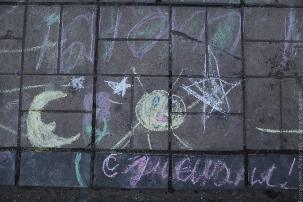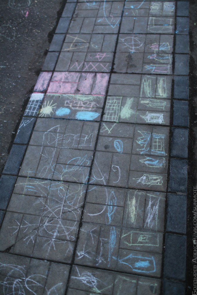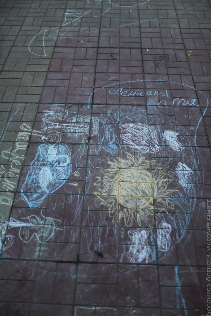 Я так понимаю на площади вчера был какой-то праздник ко Дню защиты детей, и наверно был какой-то конкурс, и помимо классиков из 87 (О_О) клеточек, там было много рисунков, начнем с самого крутого, над которым я смеялся чуть ли не в голос:)