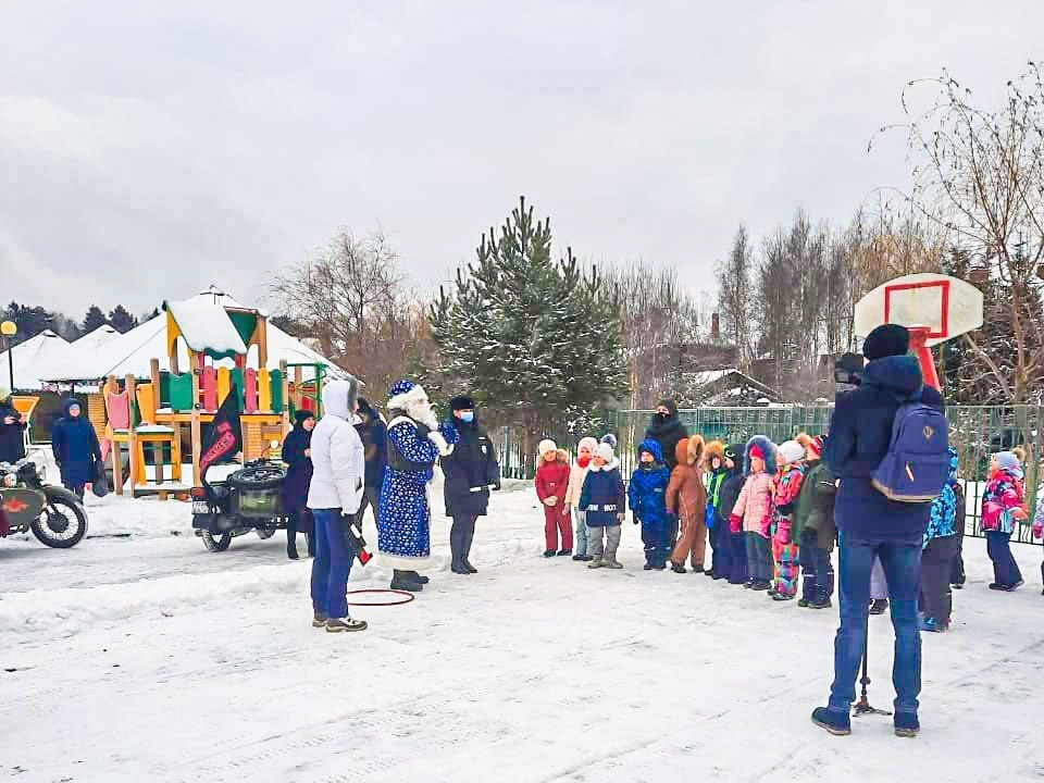 Ночные волки Краснознаменска поздравили детишек в садике с наступающим Новым годом