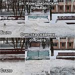 Из-за погодных условий коммунальными службами была проделана огромная работа по уборке снега: задействовано несколько единиц спецтехники, очищены центральные улицы и придомовые территории.