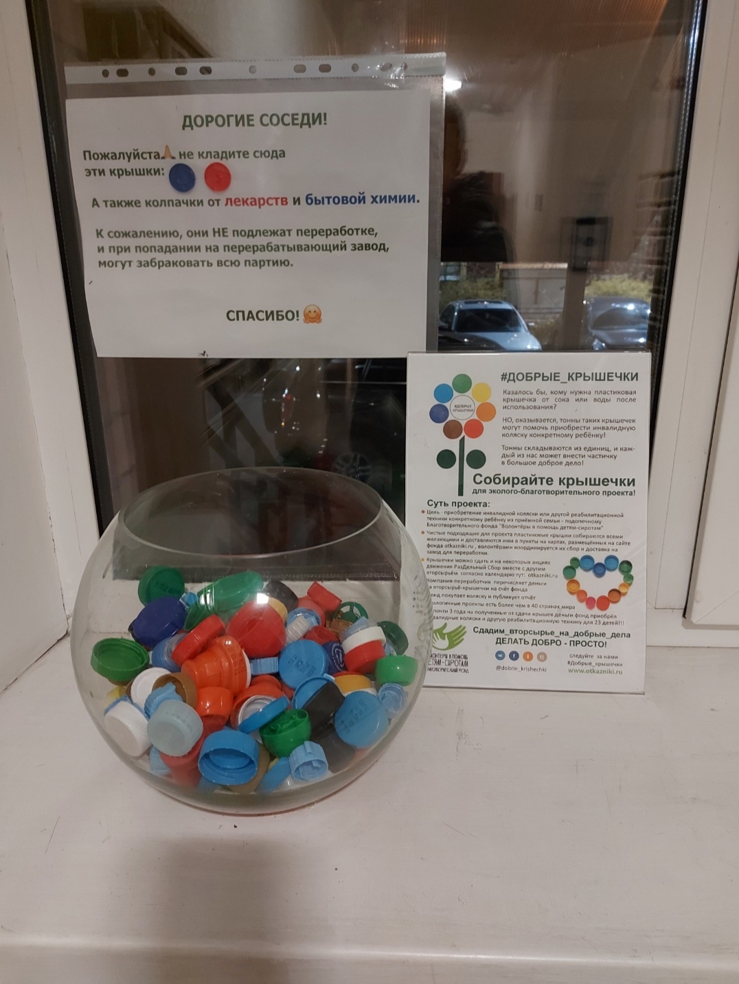 Вчера из подъезда дома по ул.Парковая была украдена ёмкость для сбора "Добрых крышечек".