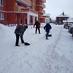 По улице Строителей 12 /3, председатель совета дома Меняйлов Владимир организовал расчистку придомовой территории. Вышли инициативные жители.