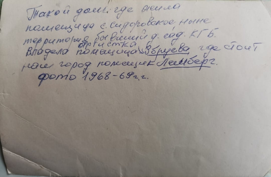 Дом помещицы Збруевой. Ныне это территория "садика КГБ", расположенного вблизи г. Краснознаменска.