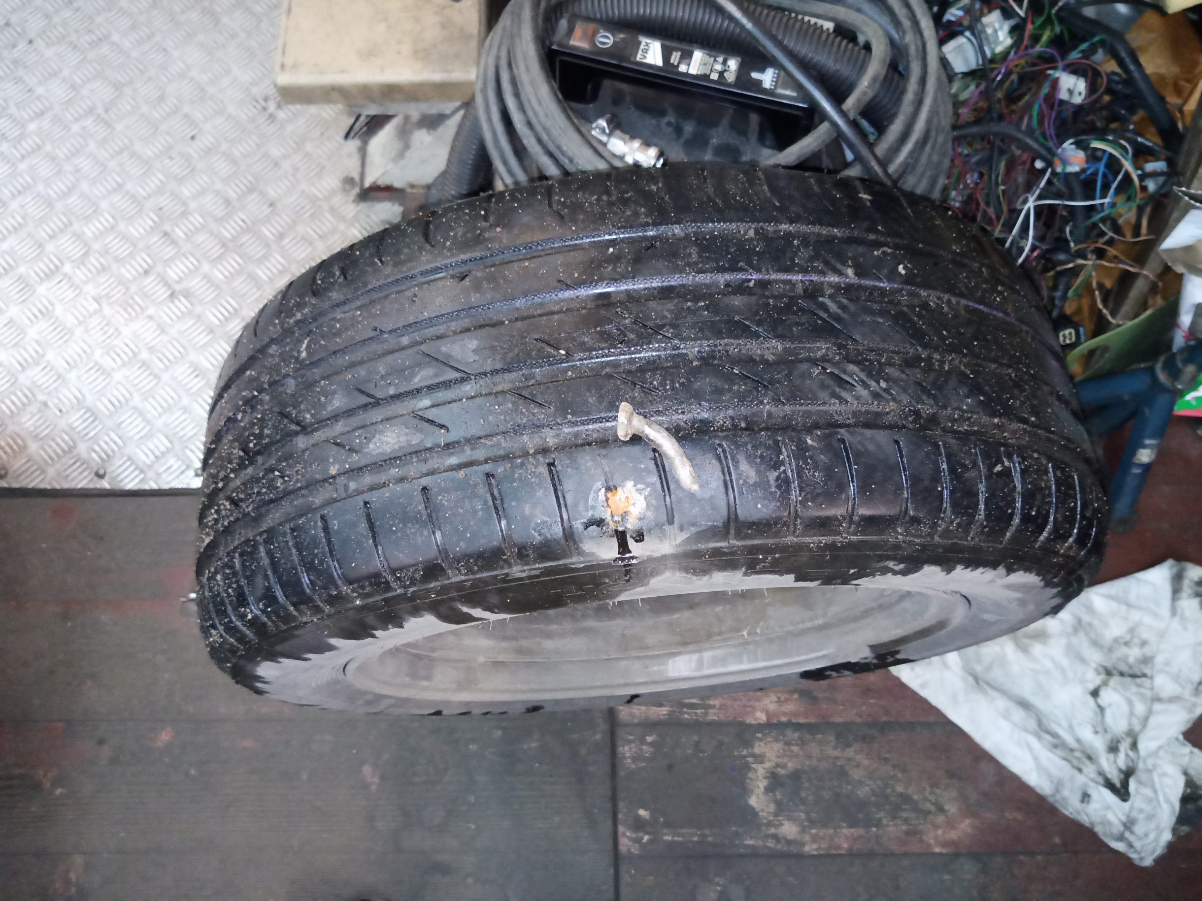 Вчера, меняя колеса на летние, я проверил их на наличие посторонних предметов и проколов- все было норм, но, приехав на место стоянки, проехав через ул.Победы, обнаружил в заднем колесе болт. Болт, Карл, даже не саморез! Судя по геометрическим характеристикам сего болта, прихожу к выводу, что им крепилось архитектурное творение в виде лежачего полицейского, которое руками, произрастающими из таза, подрядчика было демонтировано на время ремонта полотна, и не произведена в должной мере очистка дороги после работ.