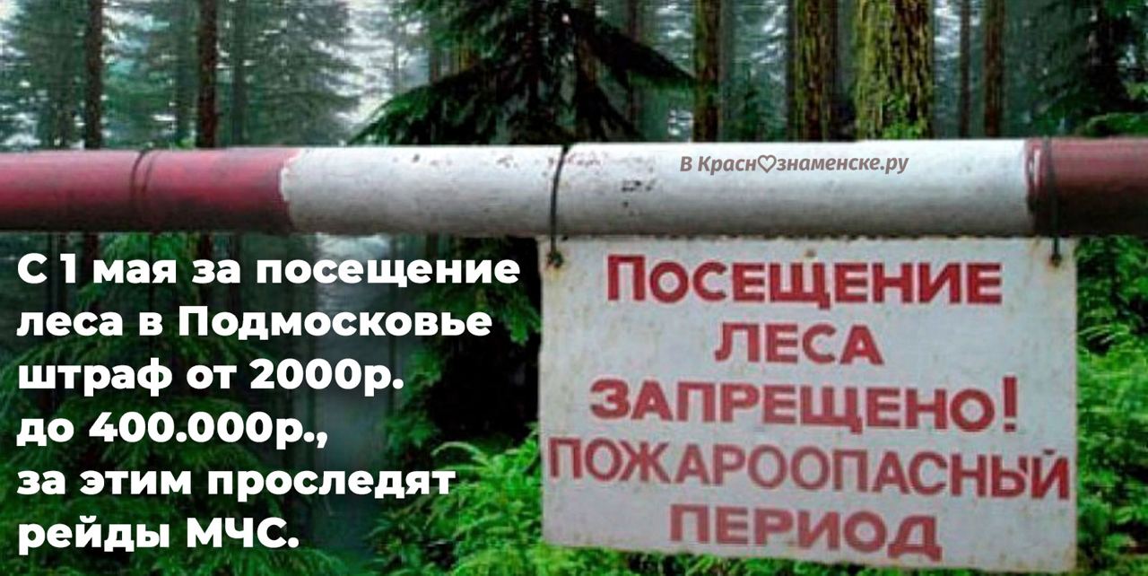 C 1 мая за посещение леса в Подмосковье штраф от 2000р. до 400000р., за этим проследят рейды МЧС.