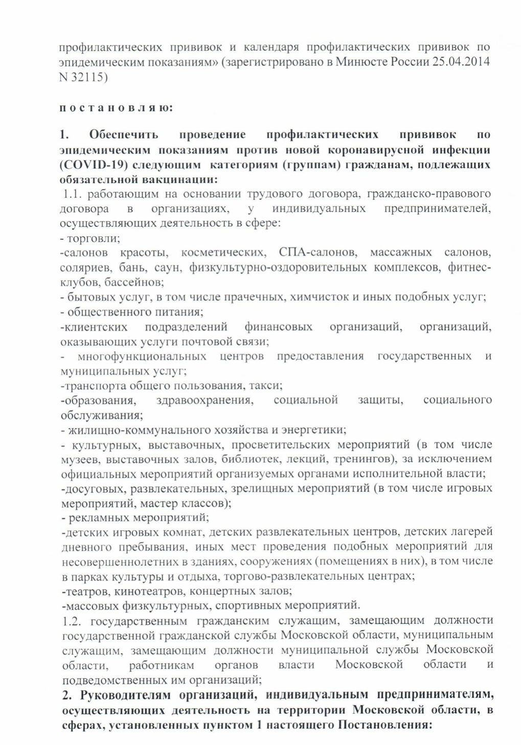 К категориям граждан, подлежащих обязательной вакцинации, относятся сотрудники сферы торговли, салонов красоты, фитнес клубов, бассейнов, бытовых услуг, общественного питания, транспорта общего пользования, такси, образования, здравоохранения, социальной защиты и других сфер.