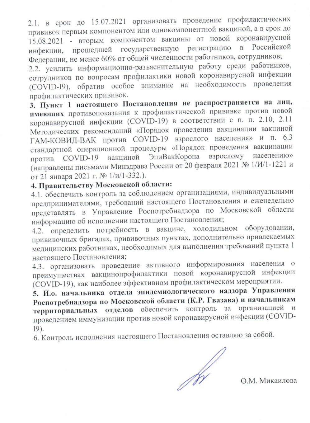 Об этом свидетельствует постановление, подписанное главным санитарным врачом Подмосковья Ольгой Микаиловой.