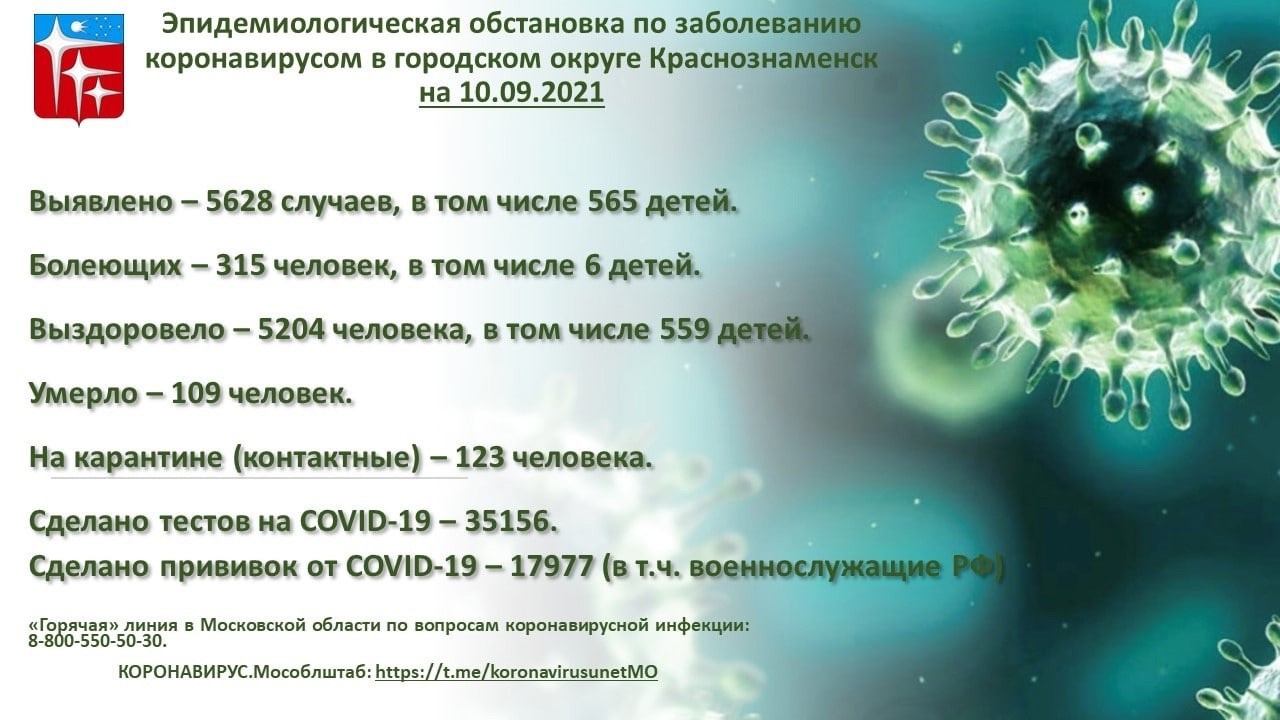Выявлено 5628 (+5), в том числе 565 (+5) детей; болеющих 315 (-39), в том числе 6 (+4) детей, выздоровело 5204 (+42), в том числе 559 (+1) детей, на карантине 123 (+63), умерло 109 (+2), сделано тестов 35156 (+170), сделано прививок 17977 (+35).