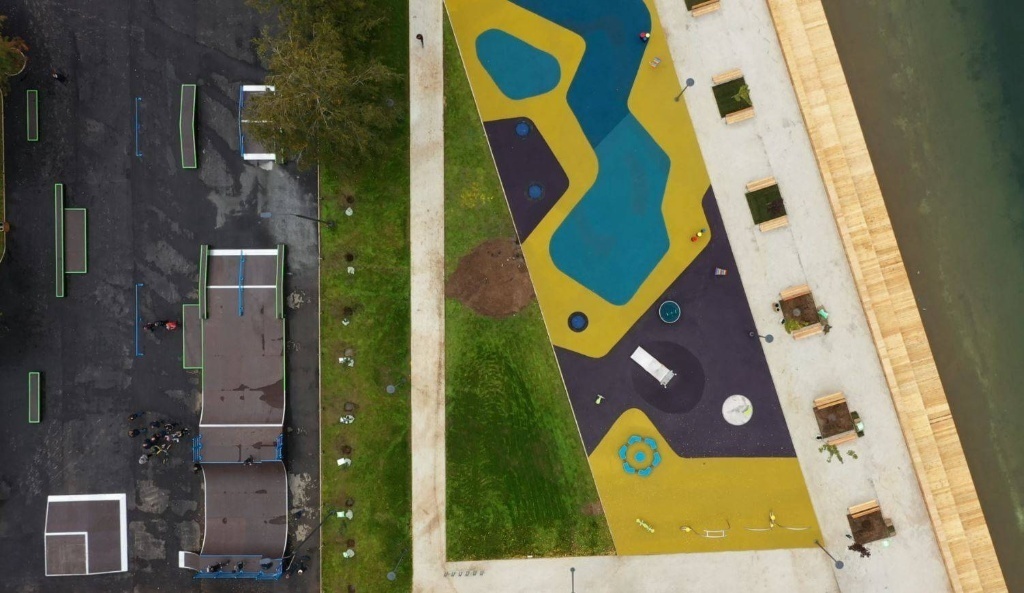 Скейт-парк и озеро