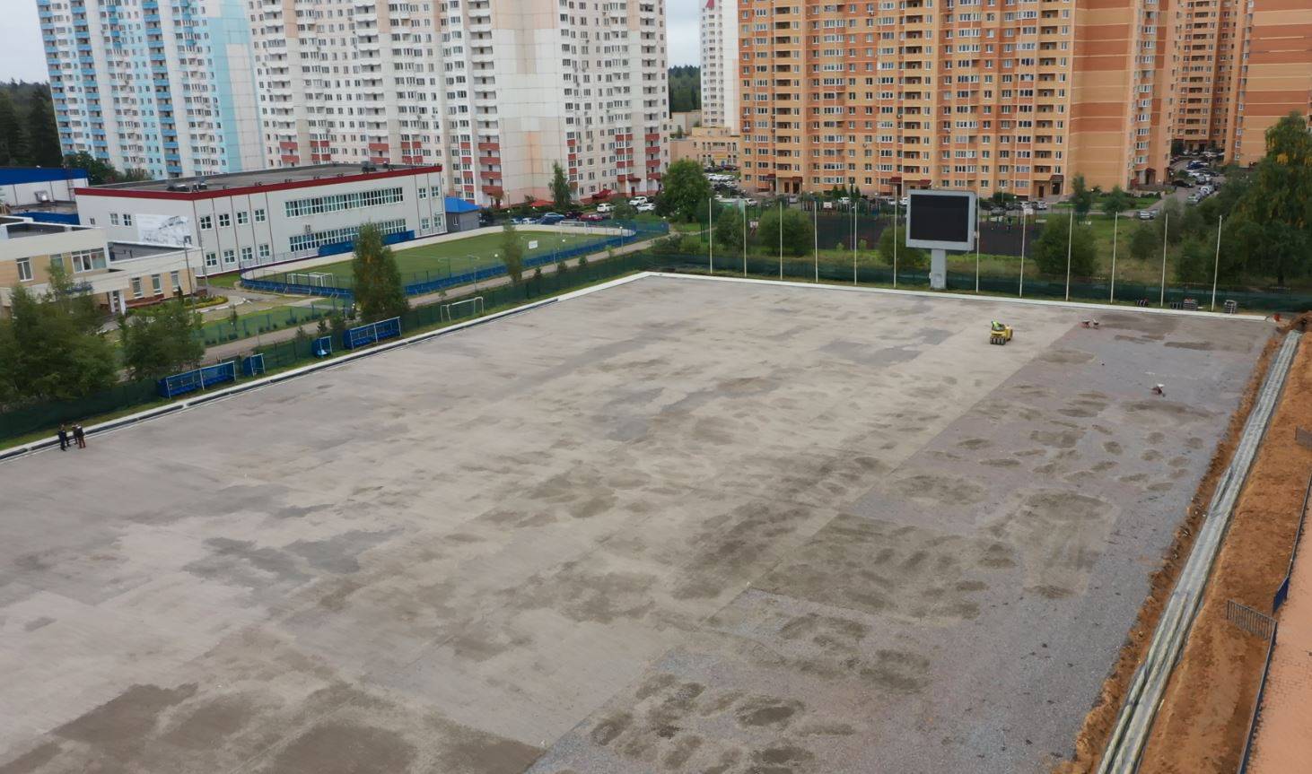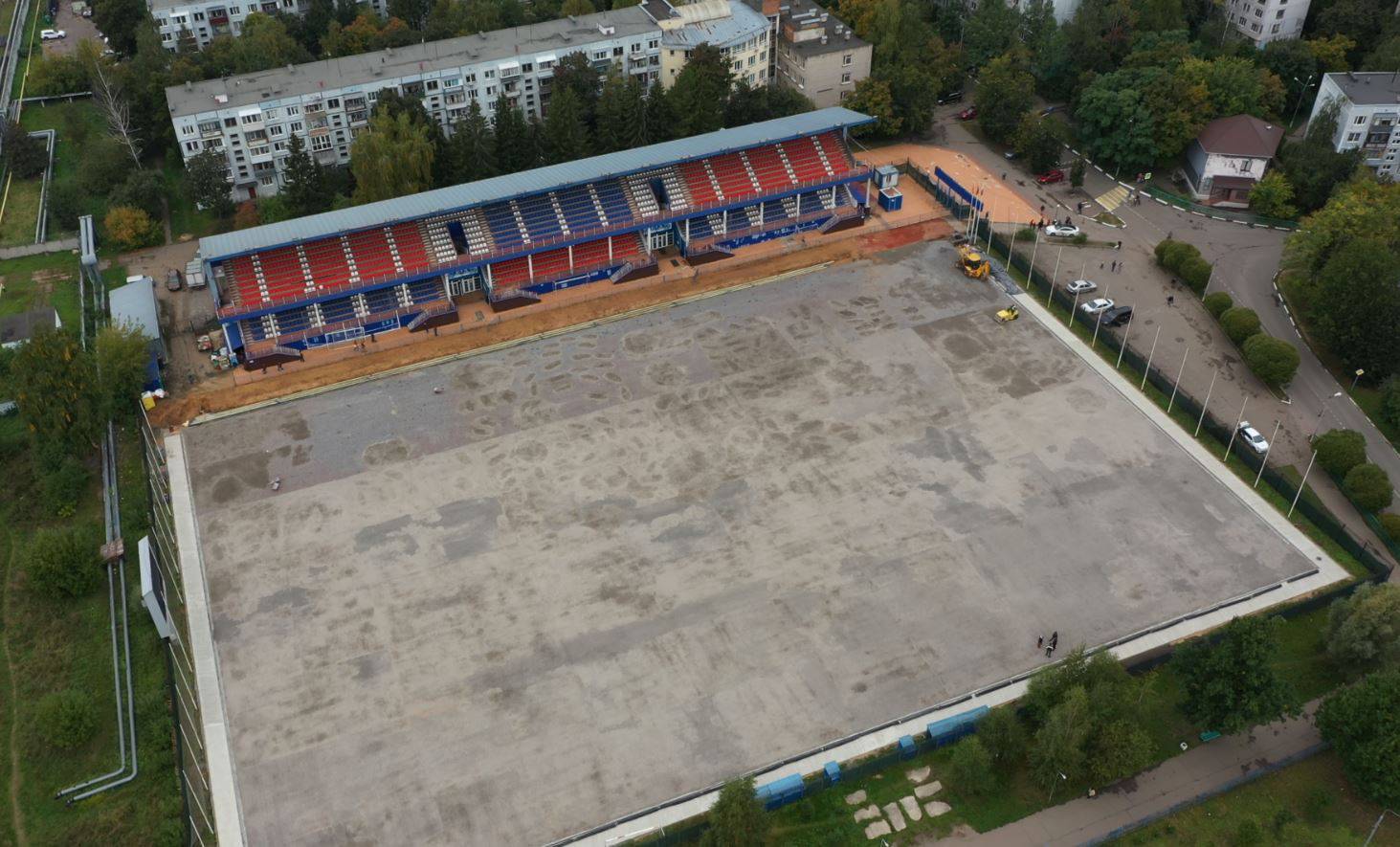 В Краснознаменске идут ремонтные работы на спортивном стадионе «Заря». Также в концу подошло благоустройство скейт-парка и приозерной территории