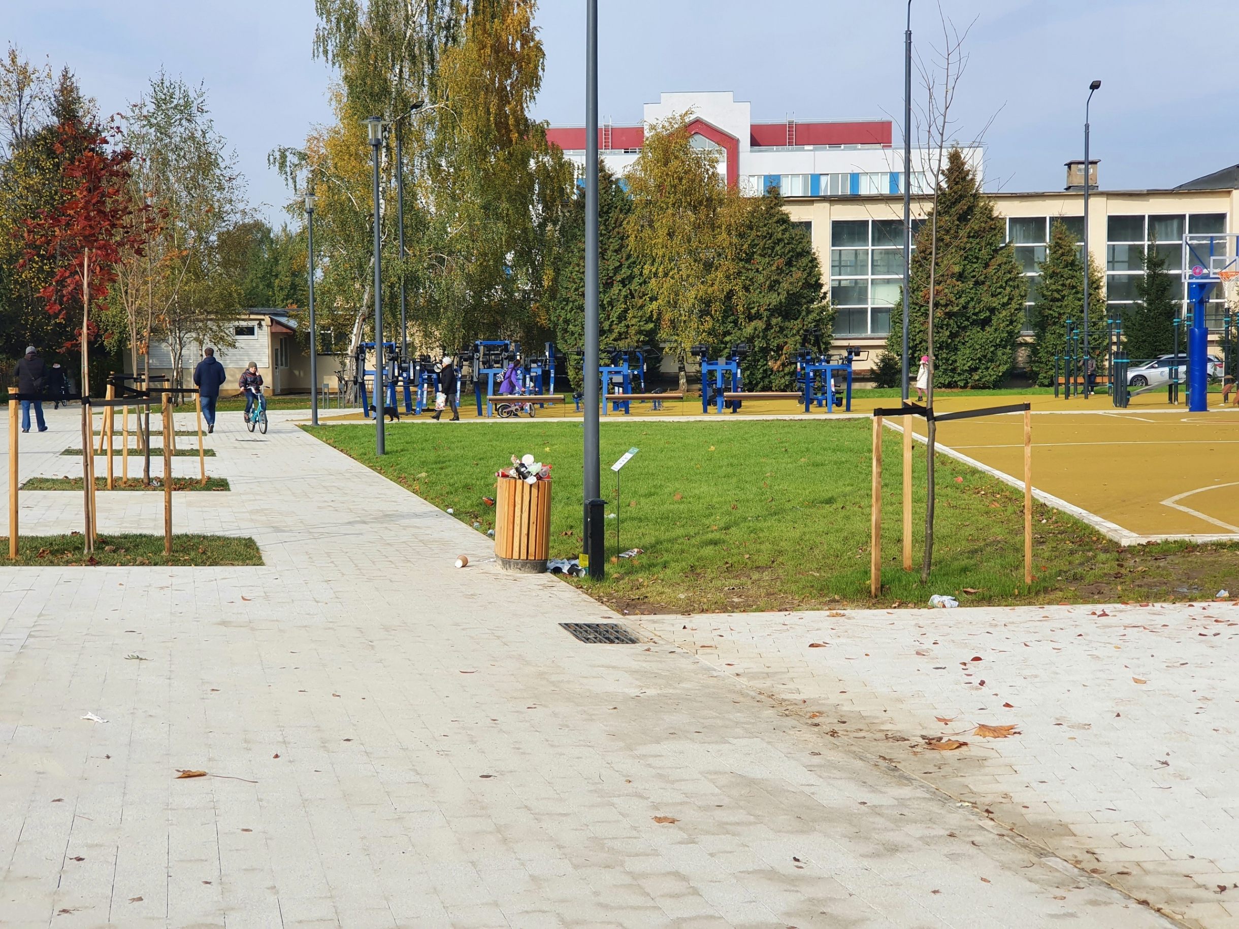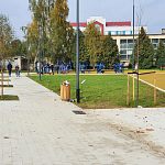 Дети и родители проводят время на свежем воздухе возле облагороженного старого озера.