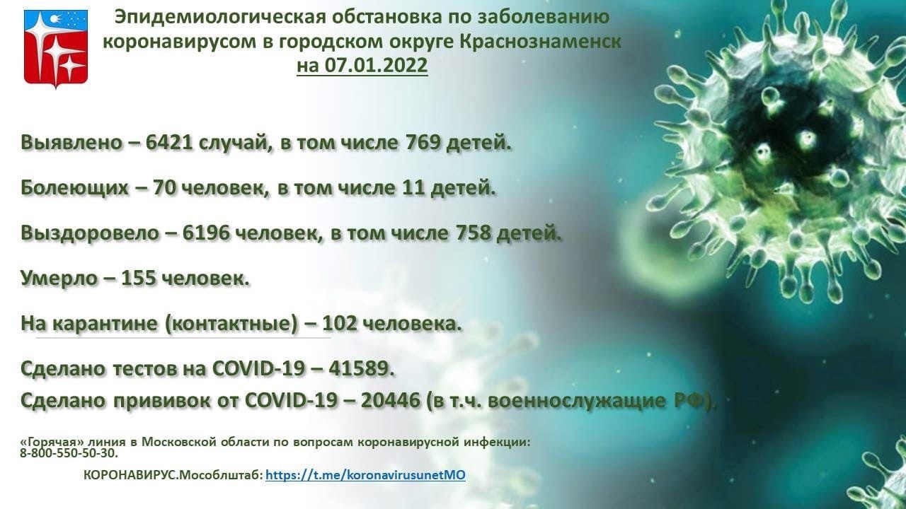 Выявлено 6421 (+14), в том числе 769 (+6) детей; болеющих 70 (-28), в том числе 11 (-8) детей, выздоровело 6196 (+35), в том числе 758 (+14) детей, на карантине 102 (-70), умерло 155 (+7), сделано тестов 41586 (+105), сделано прививок 20446 (+31).