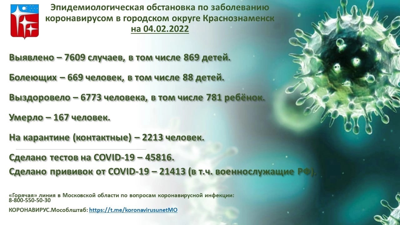 Выявлено 7609 (+799), в том числе 869 (+35) детей; болеющих 669 (+511), в том числе 88 (+29) детей, выздоровело 6773 (+288), в том числе 781 (+6) ребёнок, на карантине 2213 (+471), умерло 167 (+0), сделано тестов 45816 (+2672), сделано прививок 21413 (+451).