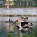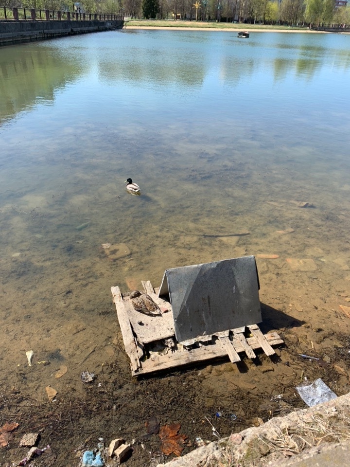 На старом озере в самый мороз отключили фонтан. Утки не улетели, их работающий фонтан спровоцировал остаться. Теперь они там замерзают и пить хотя