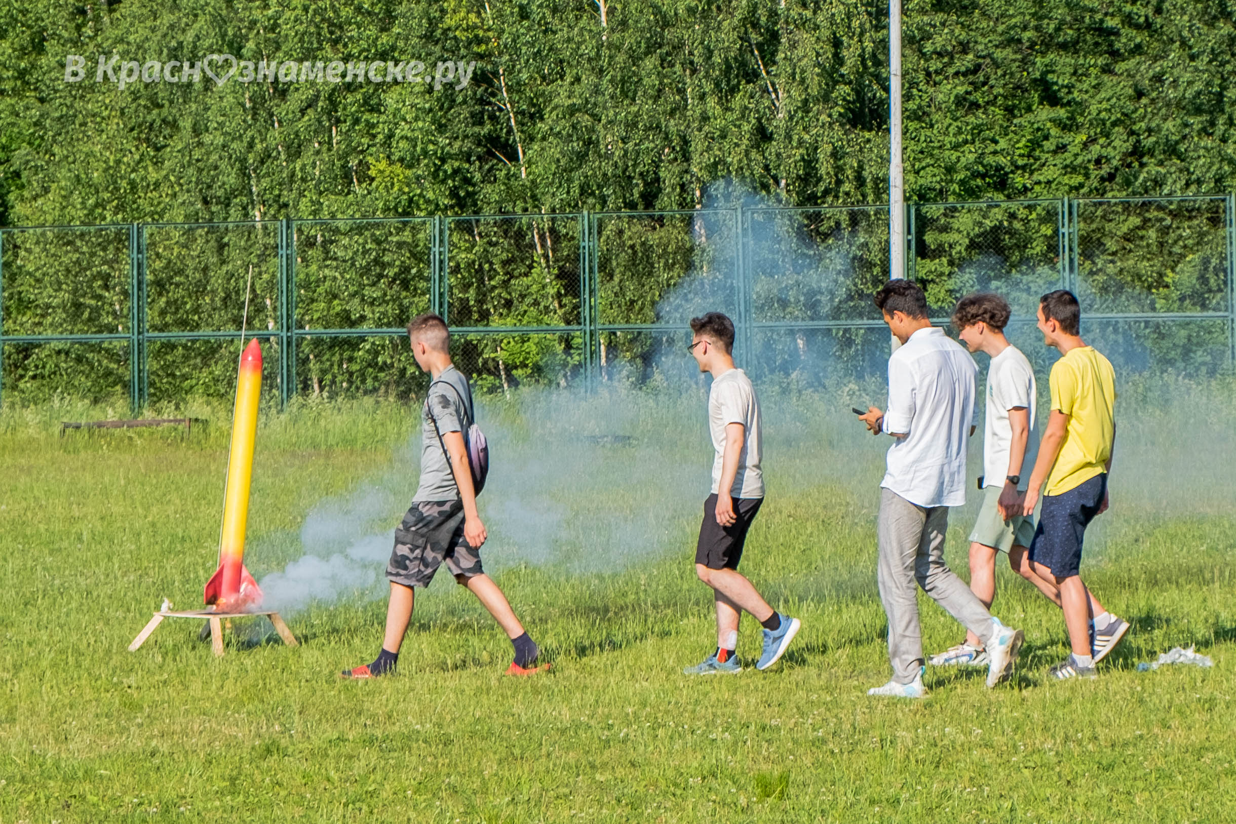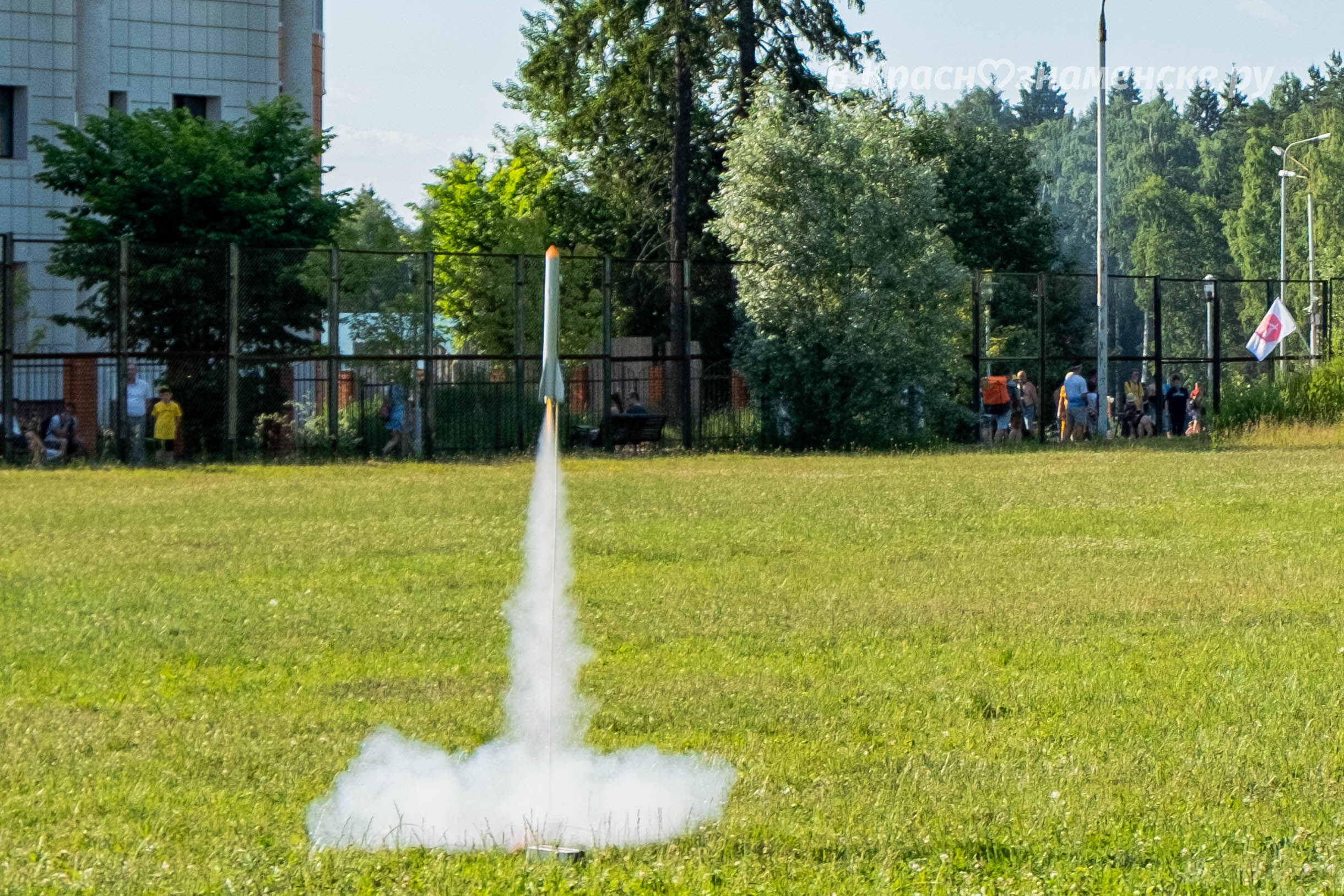 Если же вдруг кому хотелось зрелищ иного характера, то буквально в нескольких метрах, на летнем стадионе, проходил запуск моделей ракет)