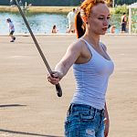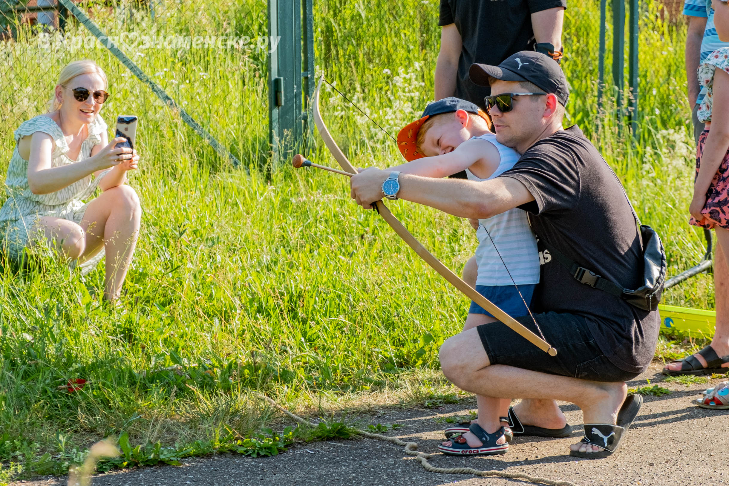 Сегодня у посетителей городского парка была прекрасная возможность примерить на себе доспехи давно ушедшей эпохи, пострелять из лука, а так же сразиться со своим товарищем на импровизированных мечах.