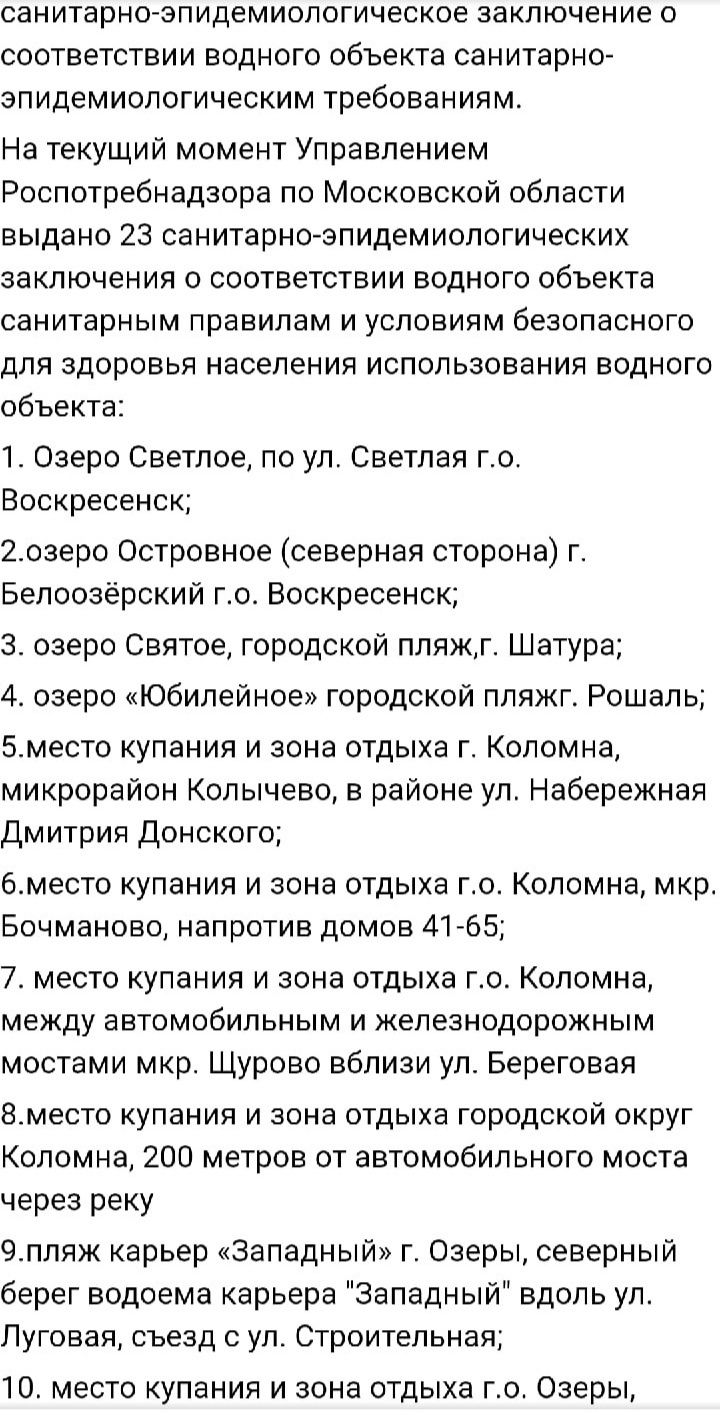 Как оказалось, обратившись в Роспотребнадзор, выяснилось , что он давал свое сан-эпид.заключение о состоянии озера, как водного объекта. И наш город в списке тех 23, у которых такие разрешения есть.(скрины с сайта Роспотребнадзора МО прилагаются. Краснознаменск под номером 13).