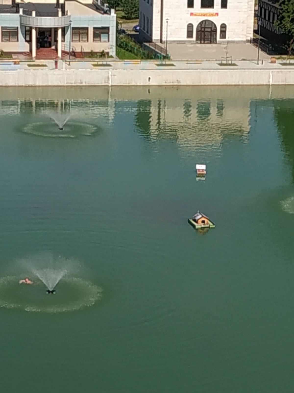 Я, конечно, понимаю, что для некоторых неадекватных личностей это как слону дробина, но всё же! Сейчас какой-то "товарищ", то ли крепко выпивший, то ли чего покуривший, залез в озеро и рассекал там до утиных домиков. Доплыл, залез на него, согнал уток, посидел на крыше и спрыгнул как с трамплина. Поплыл к фонтану, схватил его, топил его. Не вышло! В этот раз!