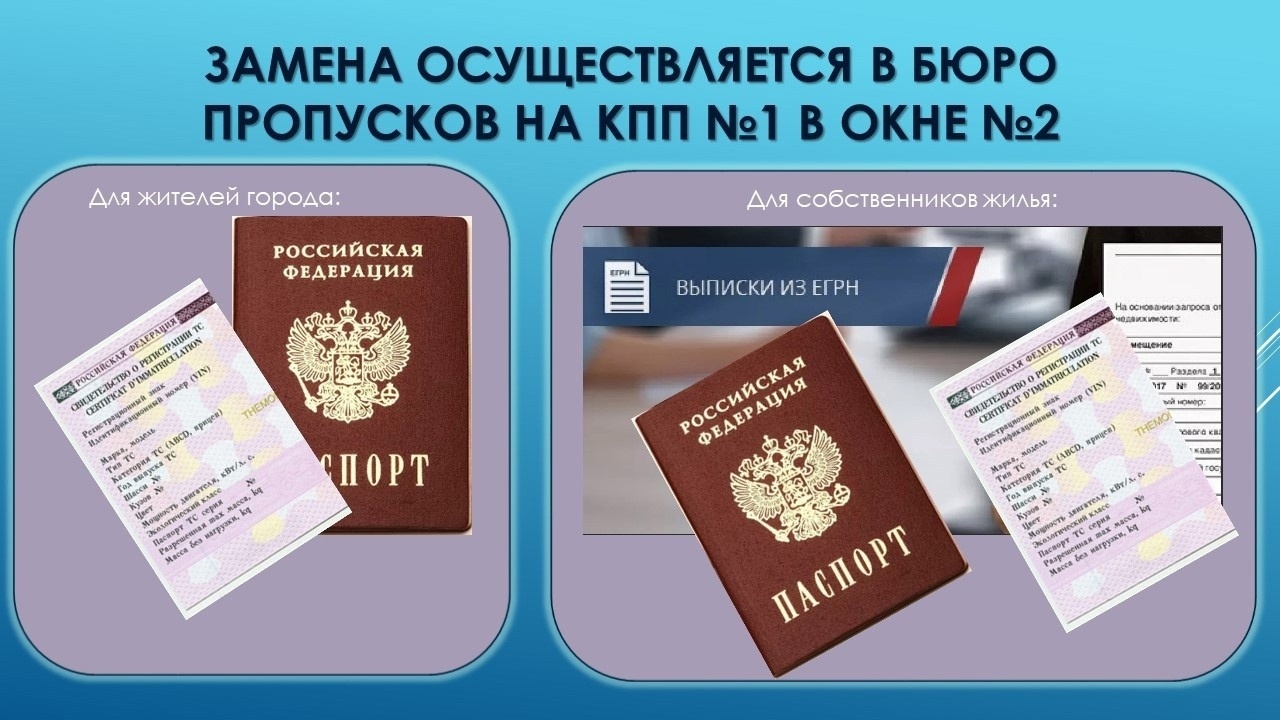 Замена осуществляется в Бюро пропусков на КПП №1 в окне №2.