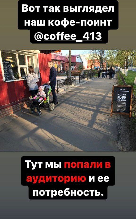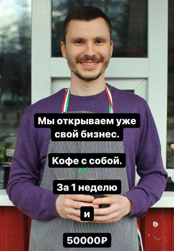 И тут мы открываем уже свой бизнес «кофе с собой». Открыли за 1 неделю и 50.000₽ Тут мы попали в аудиторию.