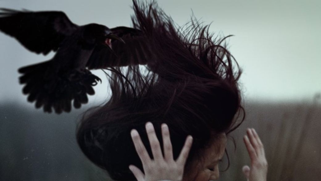 Почувствовав удар по голове. Обернулась и увидела отлетающую и орущую ворону...
