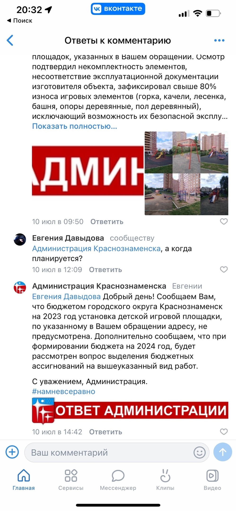 На повестке дня микрорайон Звездный, но привычнее Строители)) администрация города демонтировала несколько игровых комплексов. На вопрос когда установят новые, ответ: в 2023 нет, ВОЗМОЖНО заложат в бюджет 24. У меня вопрос: вы полностью, с заменой покрытия, меняете площадку на Советской 3, хотя дом был сдан многими годами позже, чем Лесная 27 и Строителей 12/1. На данный момент у нас на районе ситуация такая: дети скручивают с колес колпачки, бросают батарейки с верхних этажей, и творят еще много разных пакостей. Допускаю, что это от того, что им просто негде проводить свой досуг. Прошу объяснить по какому принципу вы решаете где устанавливать новые комплексы? Посмотрите на фото, вы считаете детям из 4 высоток и близлежащих домов есть где проводить время?