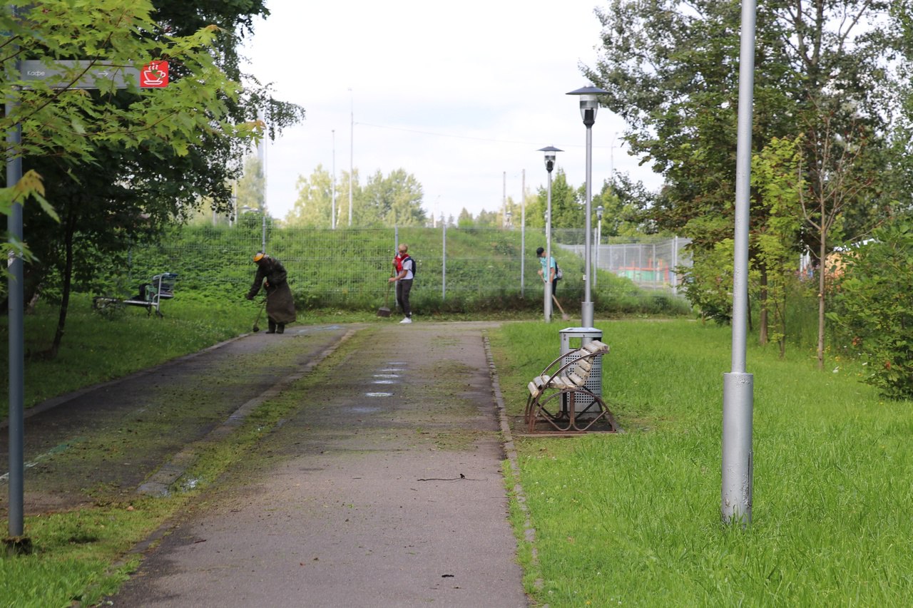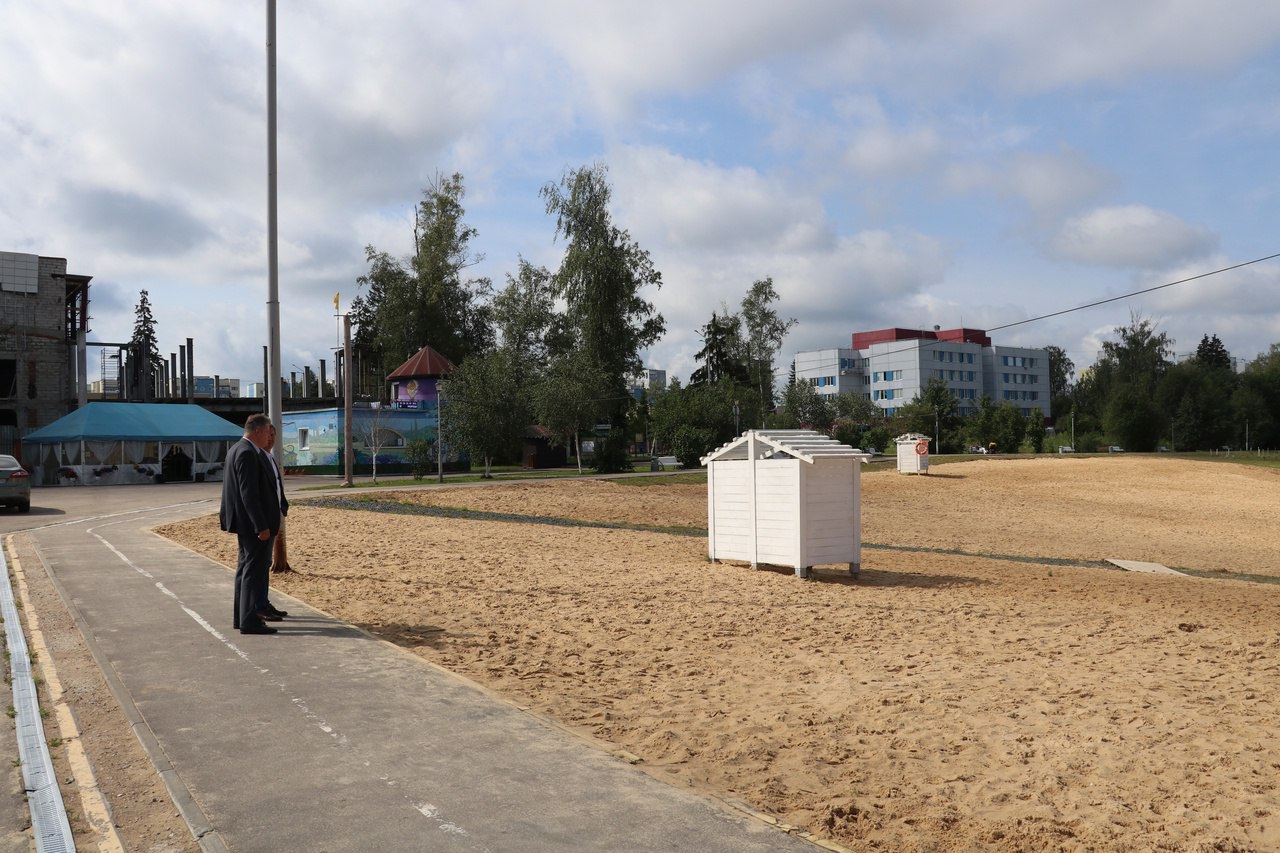 В городском парке осуществили контроль за покосом травы и подсыпкой песка на пляже озера.
