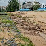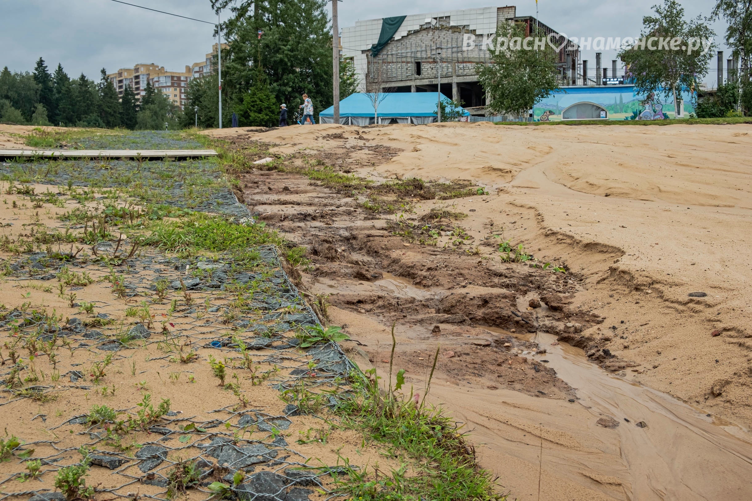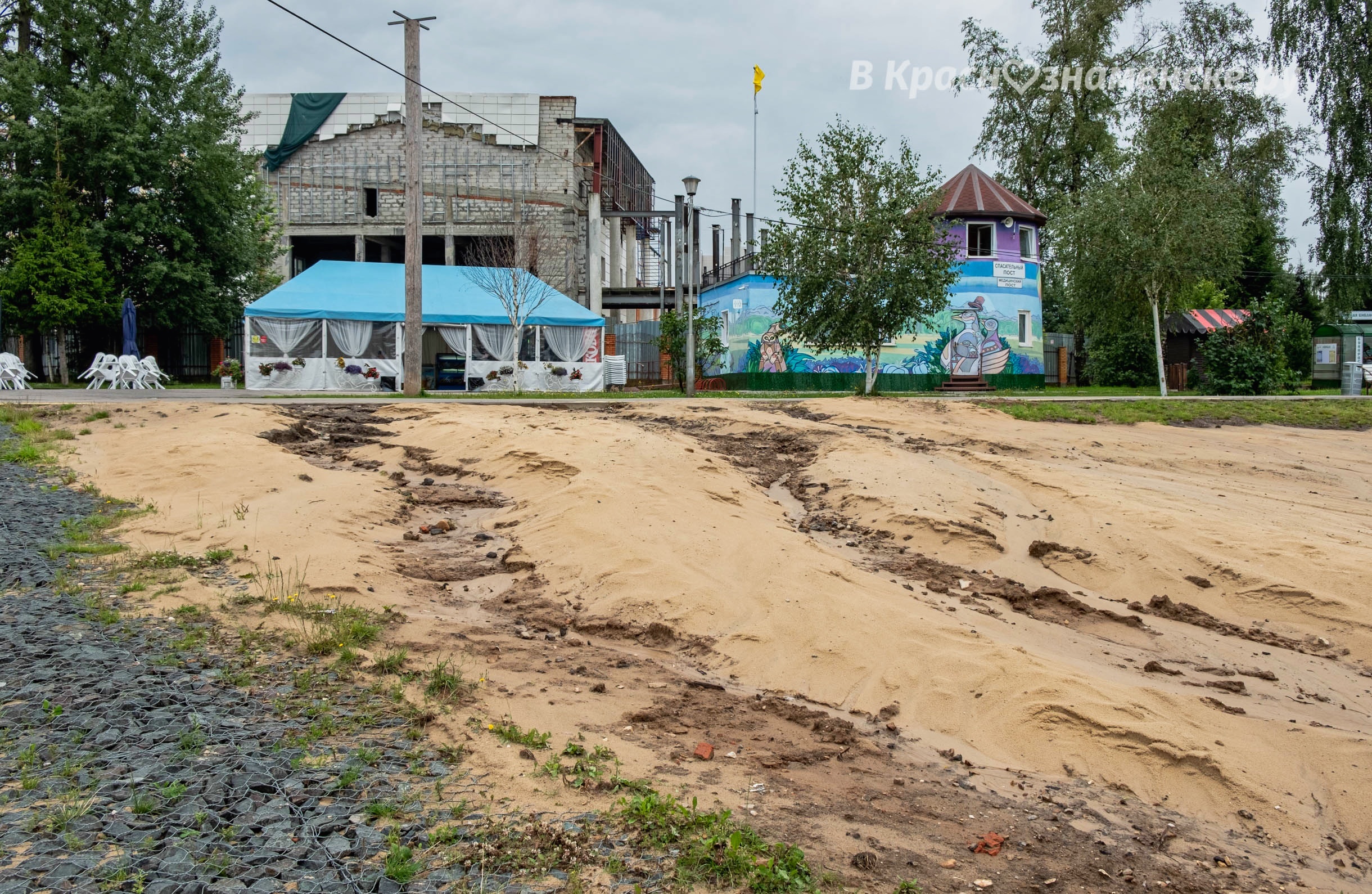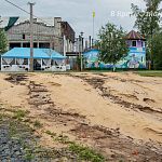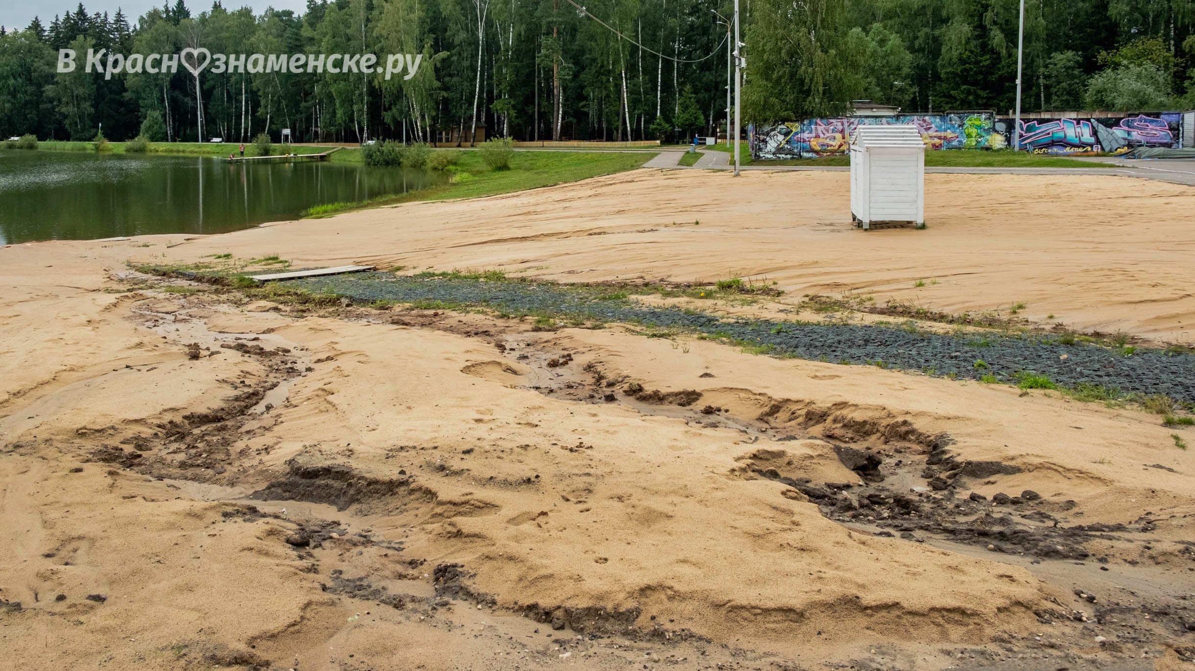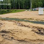 Новый песок частично смыло в озеро