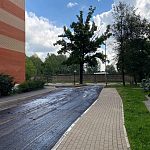 Он сообщил, что завершено фрезерование дорожного полотна на улице Советской, дома 1-3, и начата укладка нового асфальта.