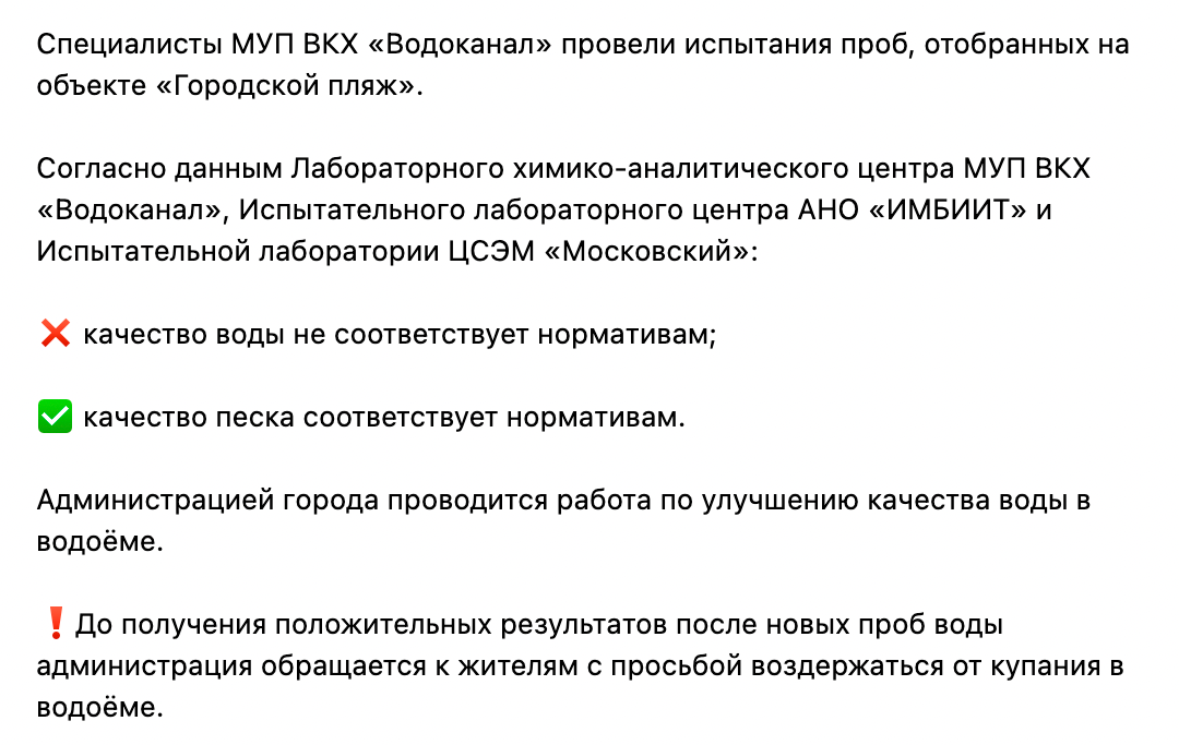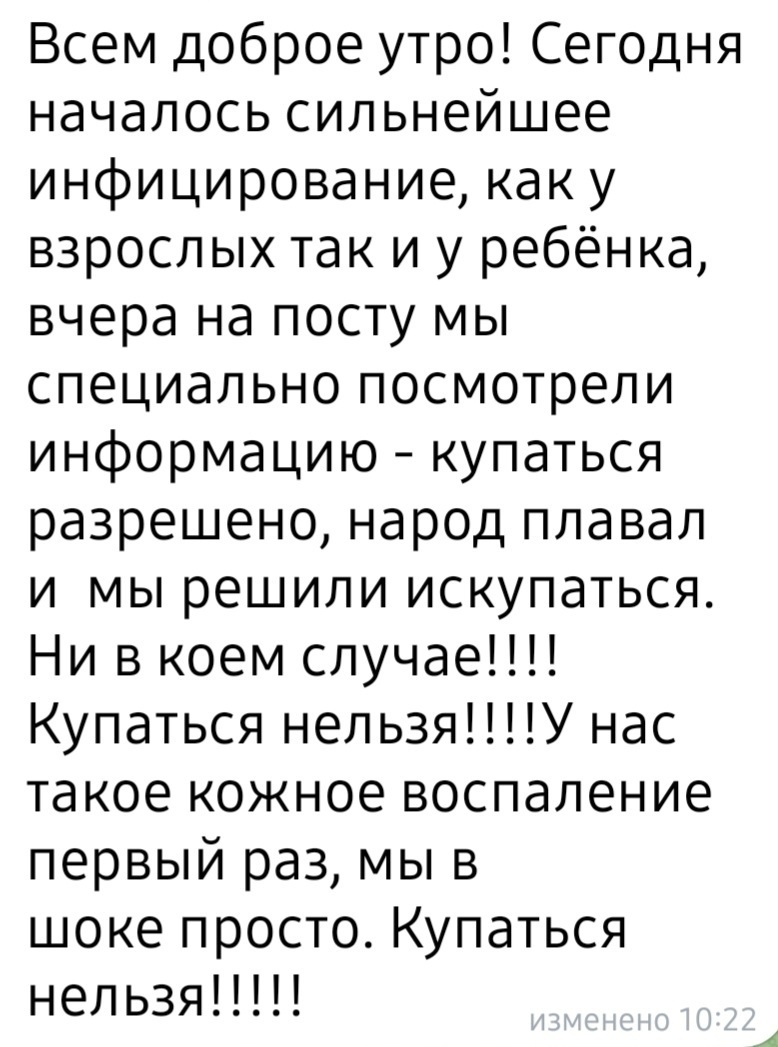 Даже Администрация в конце лета признала, что вода не пригодна для купания.