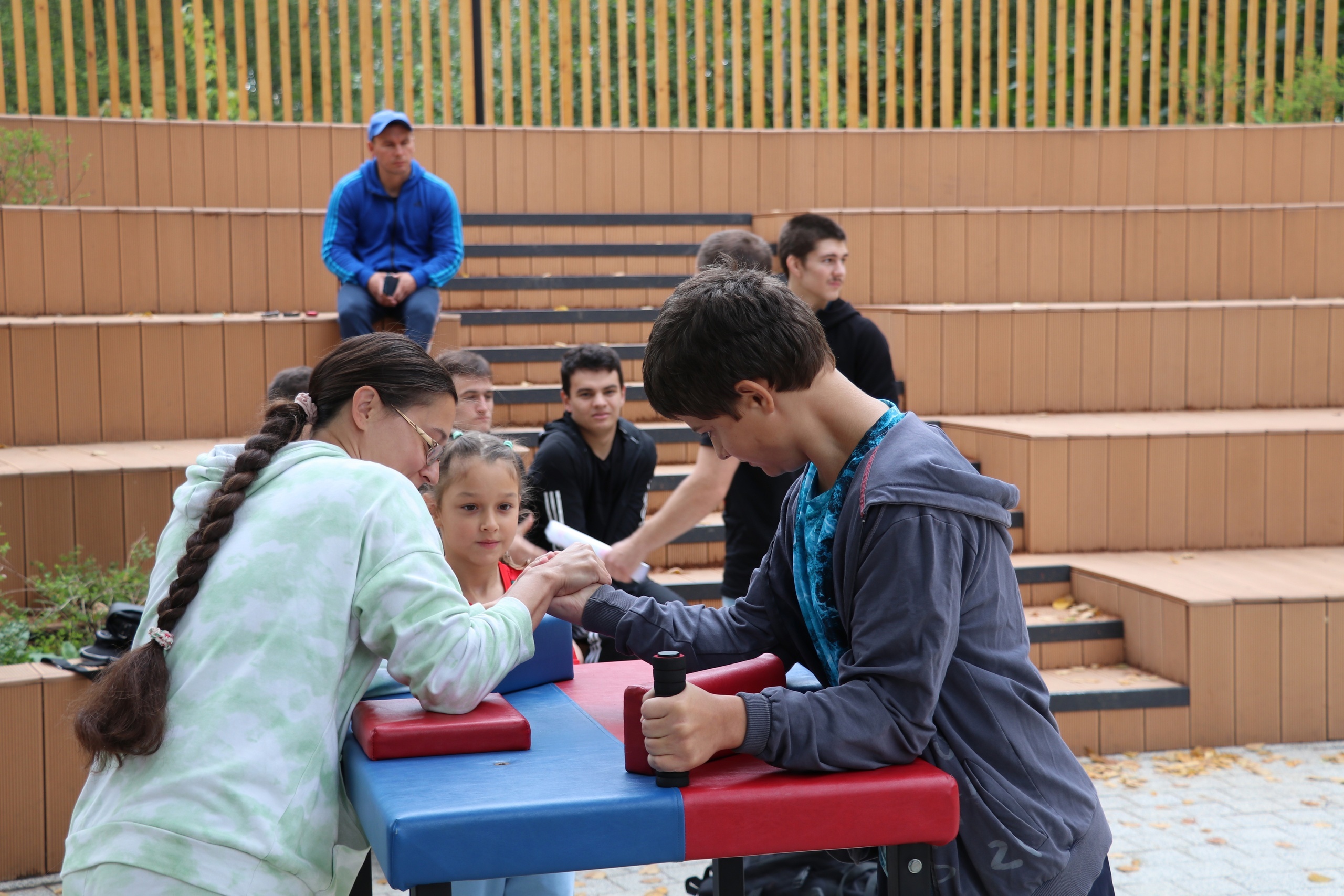 Любители соревновались на турнире по армрестлингу и гиревому спорту, для посетителей парка было представлено показательное выступление брейк-данс коллектива юных Краснознаменцев.