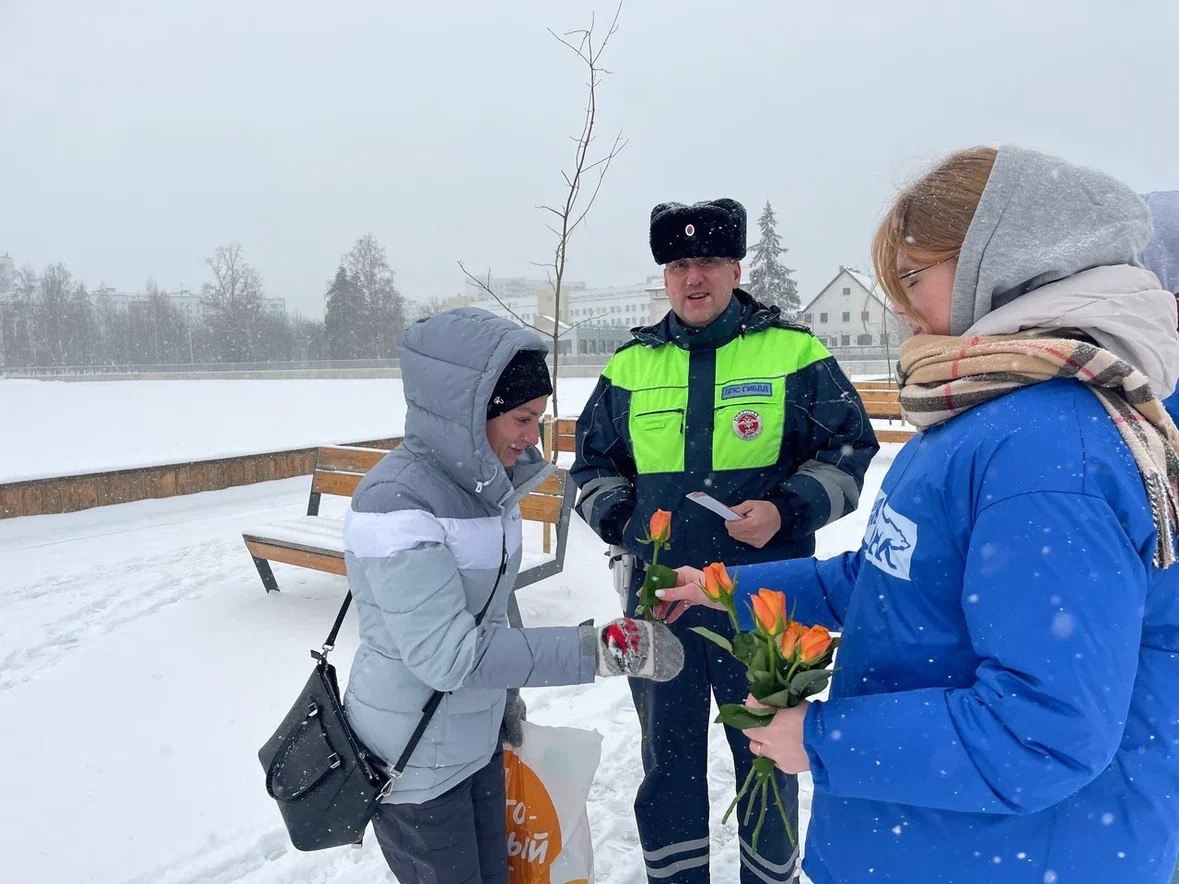 Сотрудники Госавтоинспекции МУ МВД и активисты города поздравили жителей с предстоящим Днём матери