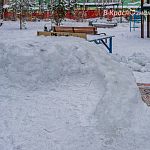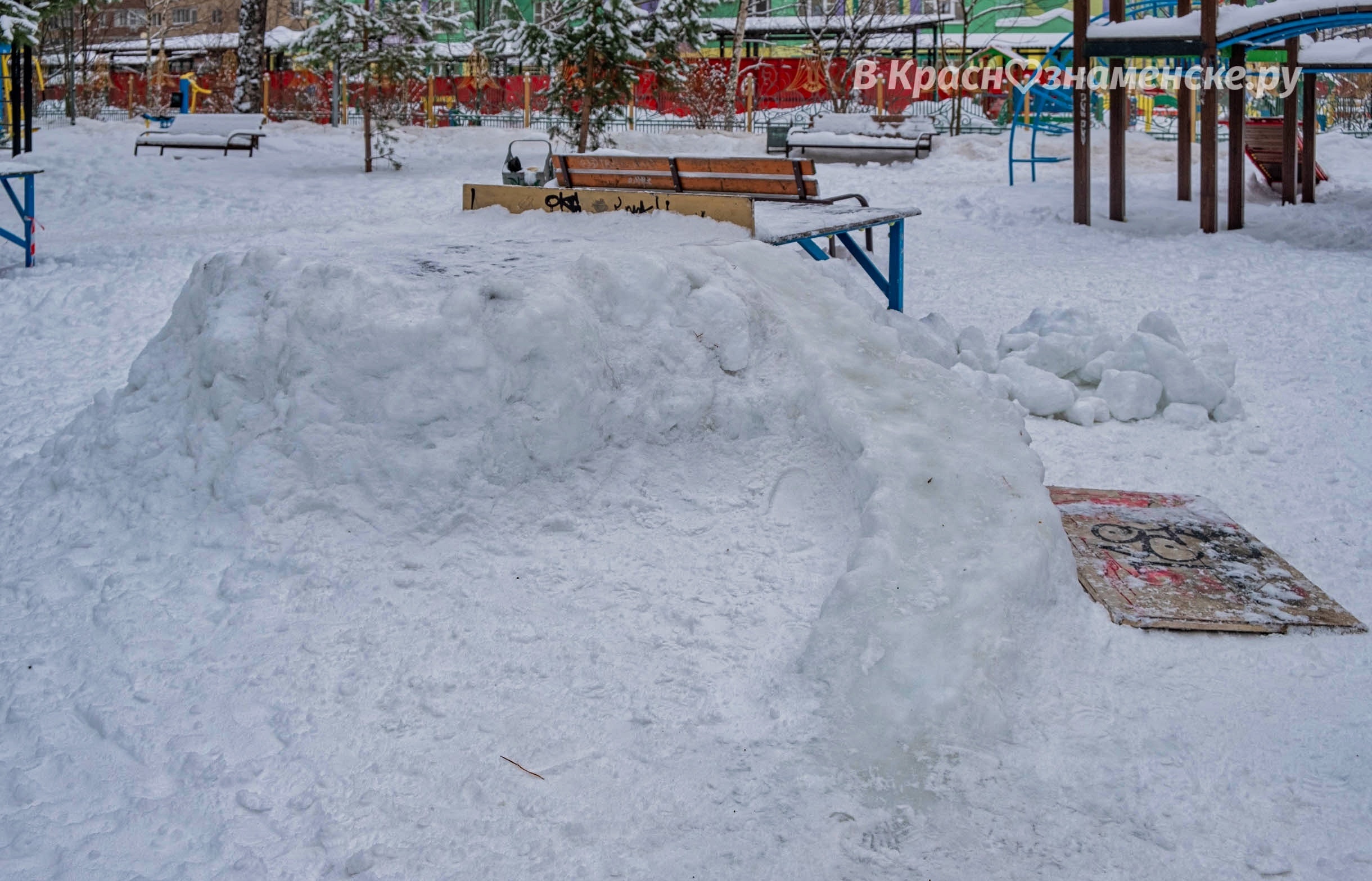 В предыдущие годы, во дворах города, встречались вот такие небольшие снежные горки.