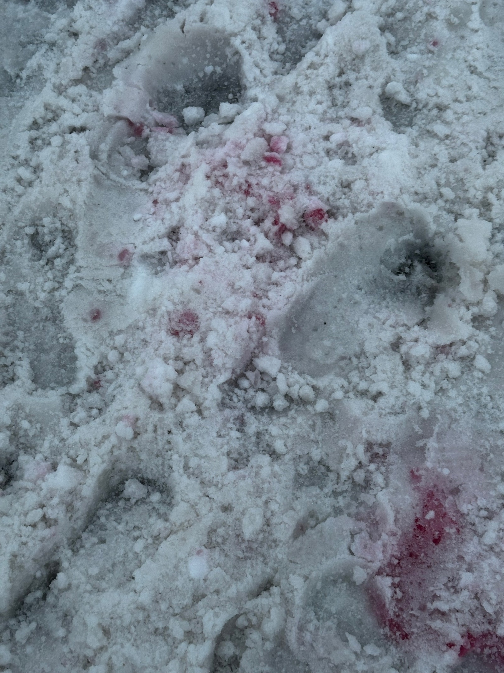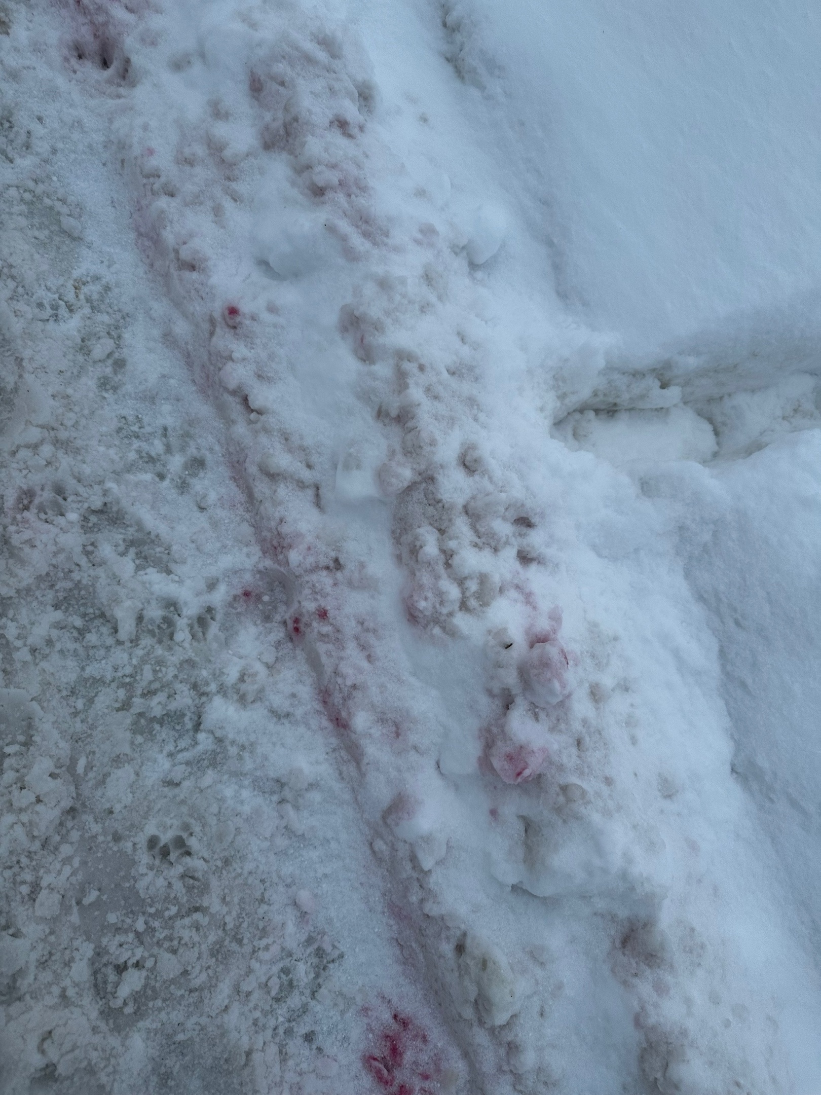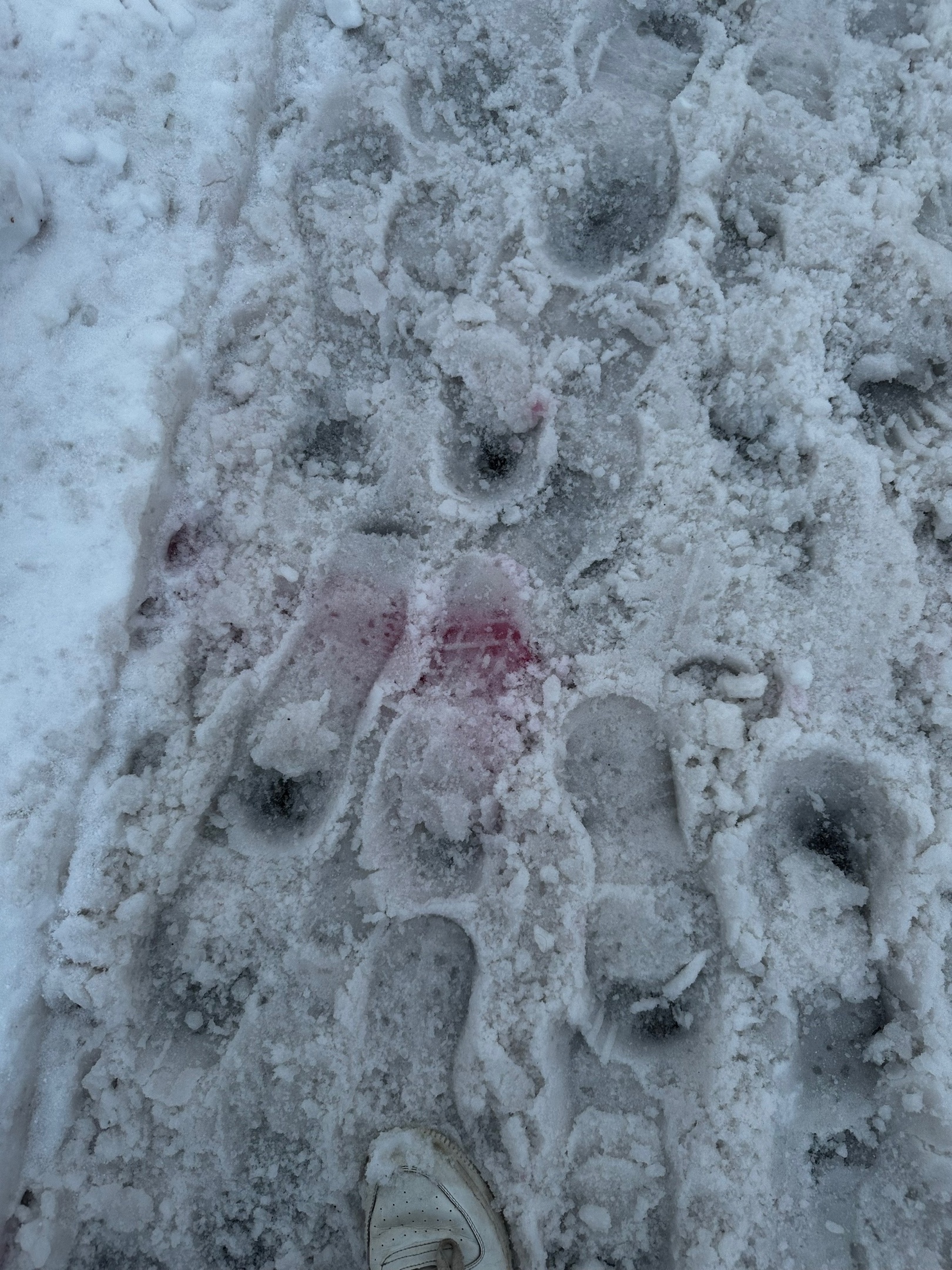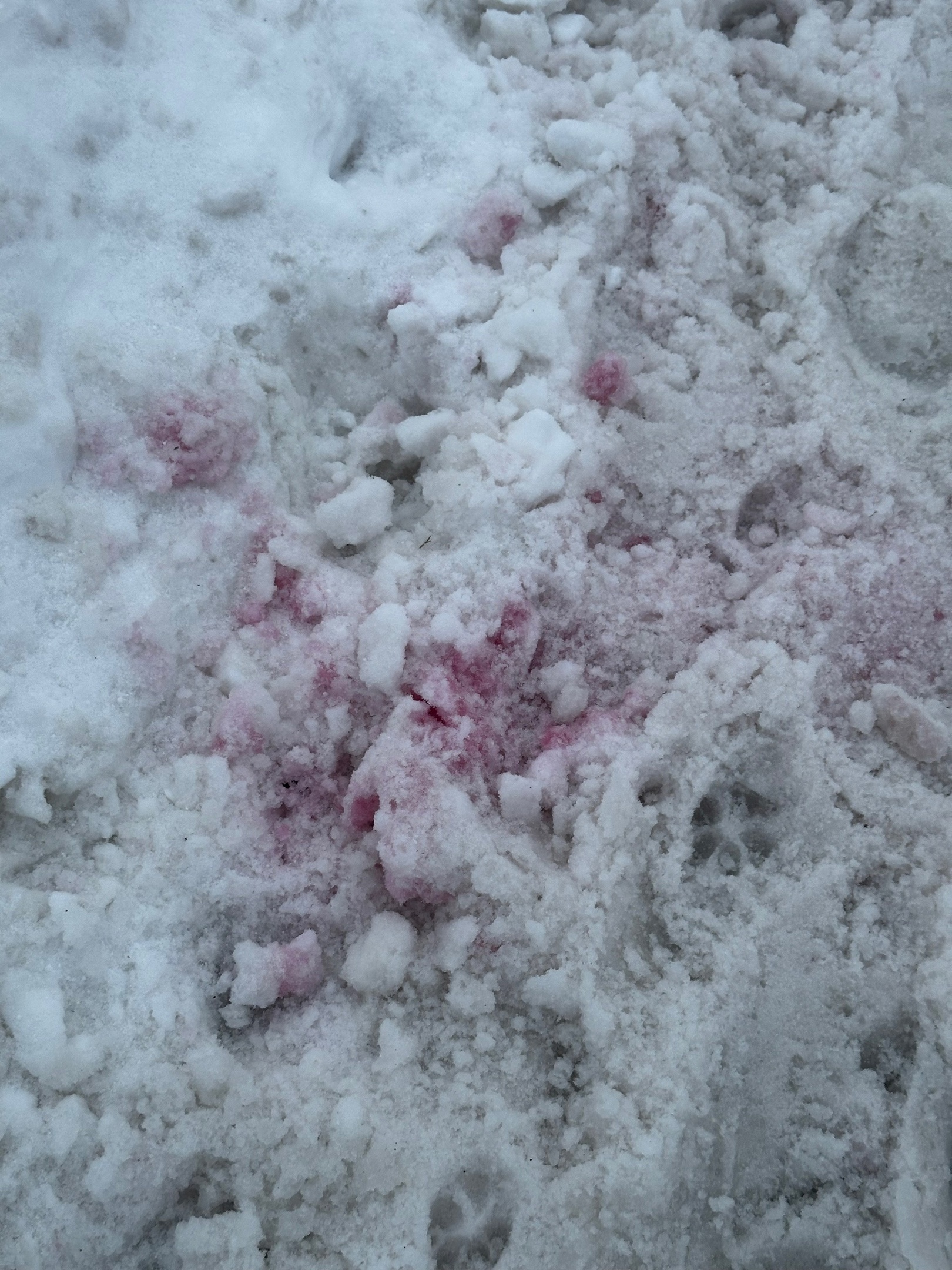 Красный снег — это от избитых лопатой?